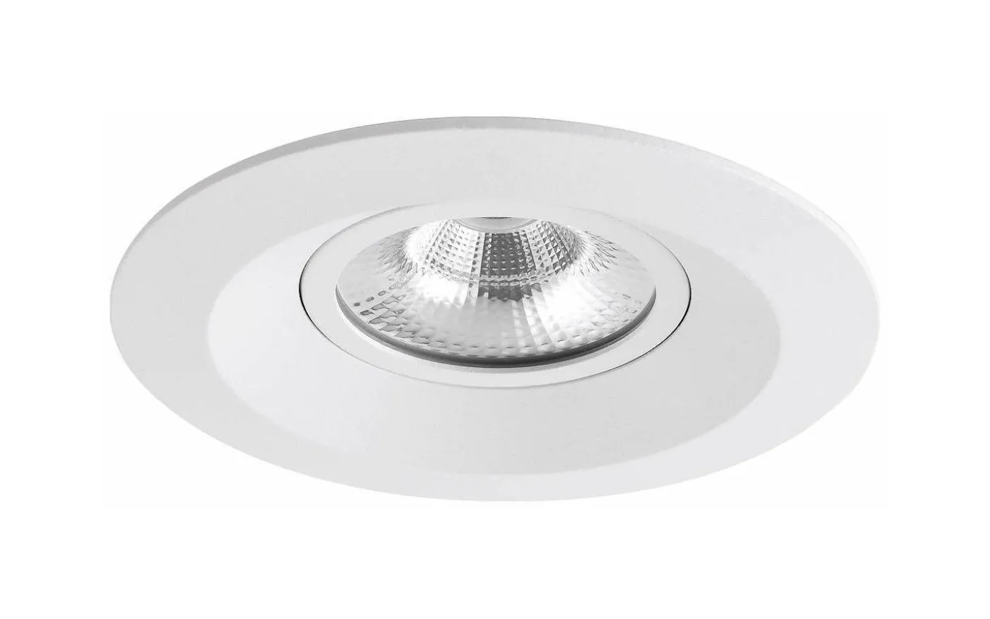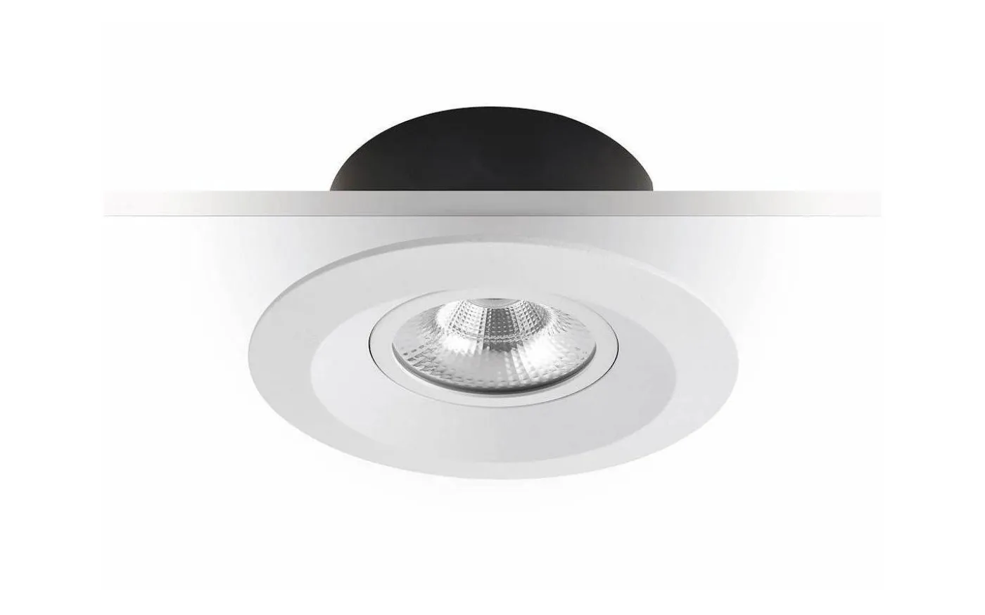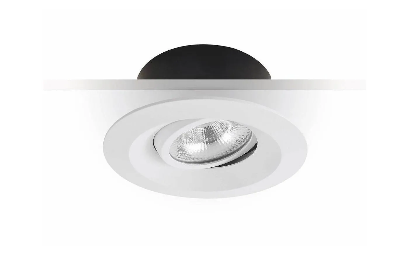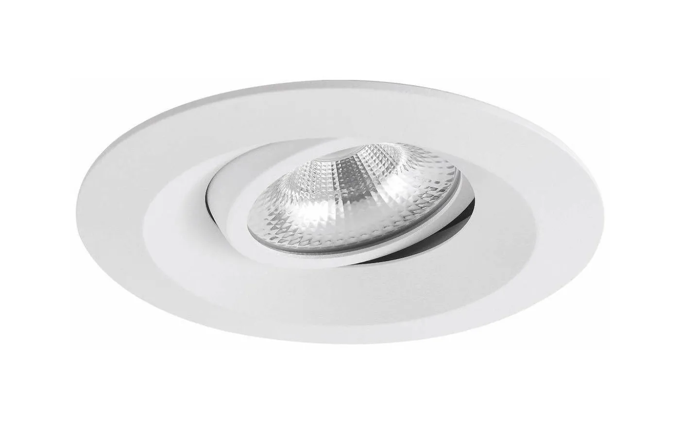 För infällt montage. Anslutes till snabbkopplingsplint 4×2,5 mm². Kan riktas 25° åt alla håll i 360°. Komplett med drivdon. Dimbar med bakkantstyrd transistordimmer (RC).