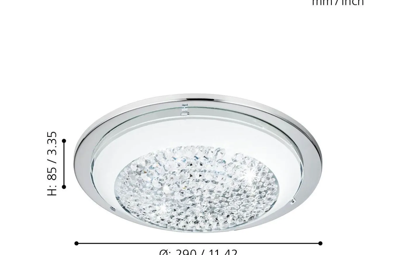 Den runda ACOLLA LED-taklampan har en cirkulär, kromfärgad metallstomme och en böjd glaskåpa. Glaskåpan har en matt vit beläggning men lämnas klar i mitten så att de gnistrande dekorativa kristallerna inuti kan synas igenom bakom glaset. De integrerade lysdioderna ger ett behagligt, varmvitt ljus. Den eleganta kombinationen av krom och kristall ger en touch av stil till ditt hem och låter de glittrande elementen komma till sin rätt.
