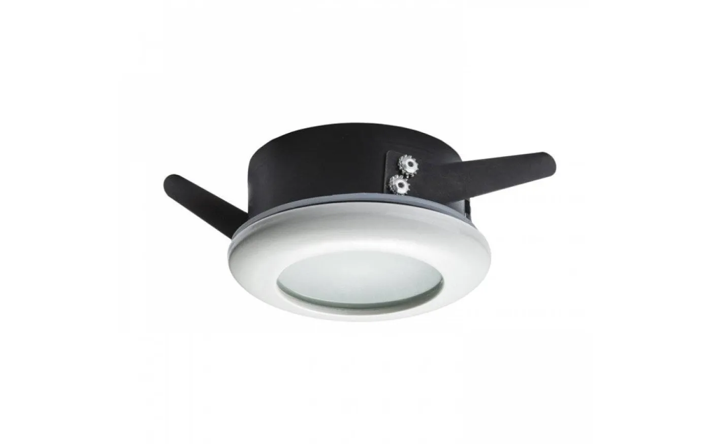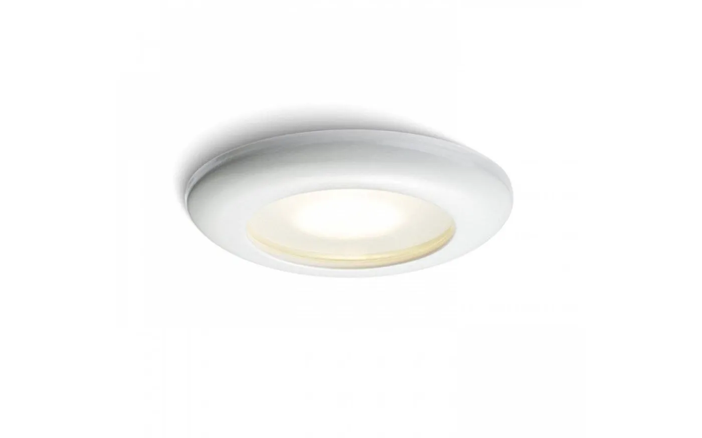 Infälld lampa med IP skydd mot fukt, lämplig för badrum. Täckskiva av satinerat glas.