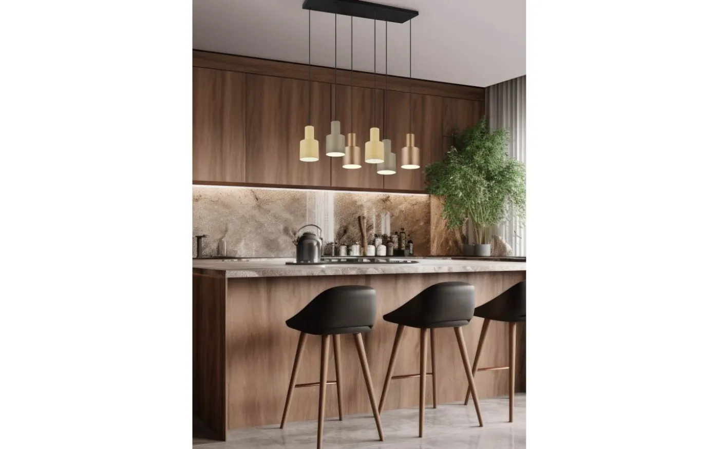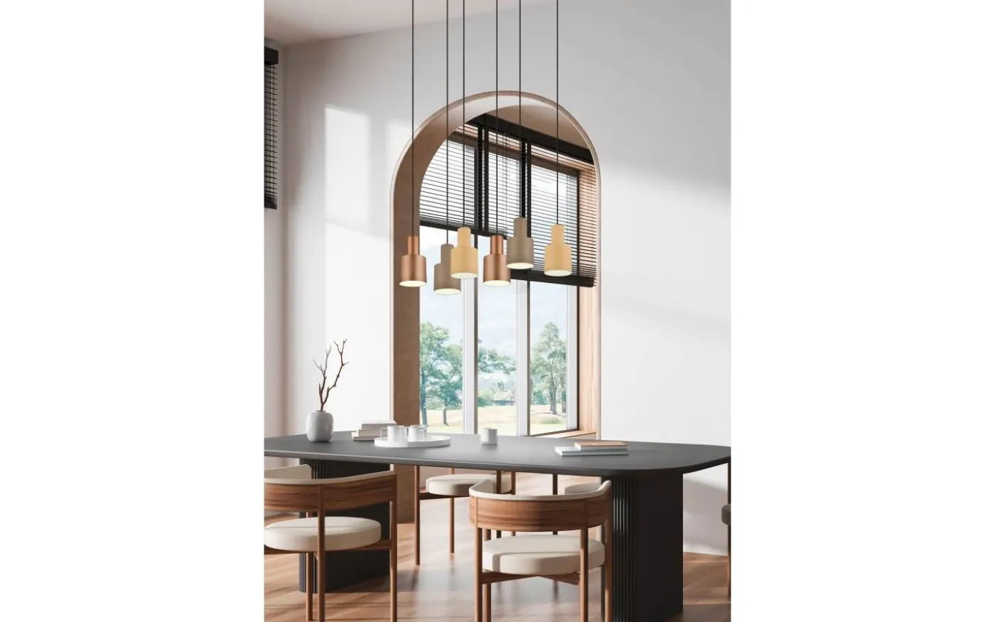 Att kombinera ljusskärmar i olika färger och höjder drar uppmärksamhet till sig och förvandlar ljuset till ett speciellt designelement i ditt hem – precis som lamporna i AGUDO-serien. Pendellampan med sex lampor utstrålar ren mysighet och minimalistisk estetik tack vare sin naturliga färgsättning och eleganta design. Ovanför ett mat- eller vardagsrumsbord förbättrar armaturen rumsstämningen med sitt varma, naturliga utseende. Den karakteristiska färgkombinationen av dämpade naturfärger och mattsvart ger armaturen stil. Skärmarnas matta metallfinish avrundar armaturen perfekt och skapar en elegant accent. För modern och pålitlig belysning rekommenderas en LED-lampa. Den erbjuder hög ljuskvalitet, är mångsidig och övertygar med jämn belysning. Dess långa livslängd och låga värmeutveckling gör den till det perfekta valet för en mängd olika användningsområden. Ljuskälla: exklusiv 6x E27 · max. 40W. Extra information: Justerbar i höjd, Takmontering, IP20, Lampa(or) ingår ej