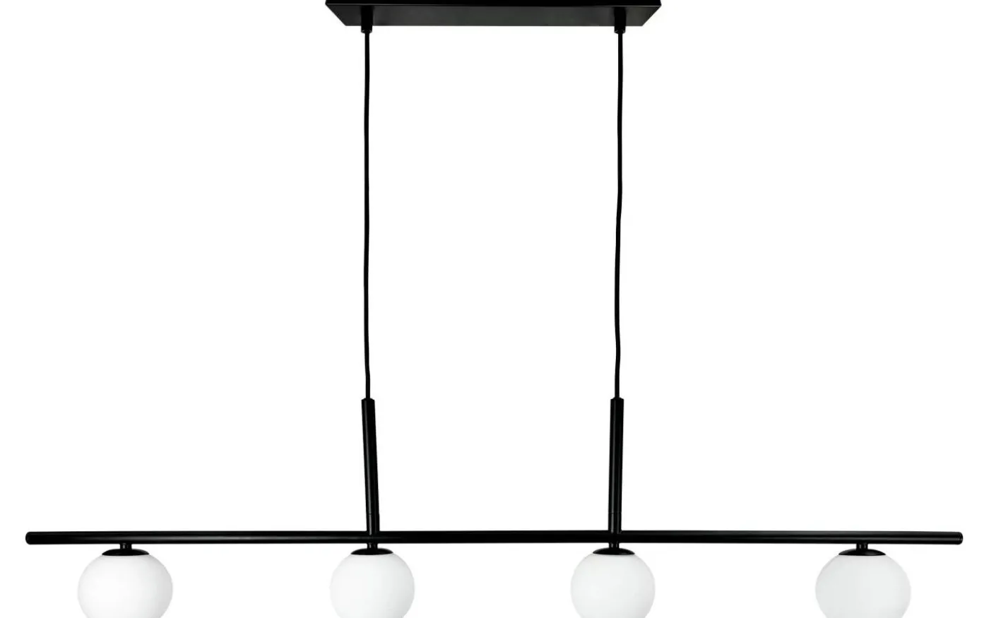 Långbordshänge med 4 x opalglas. Svart metall.