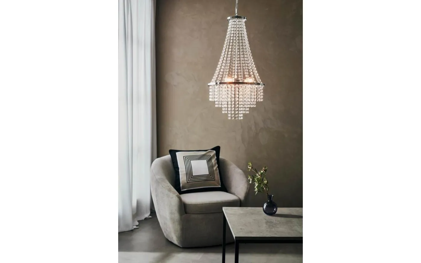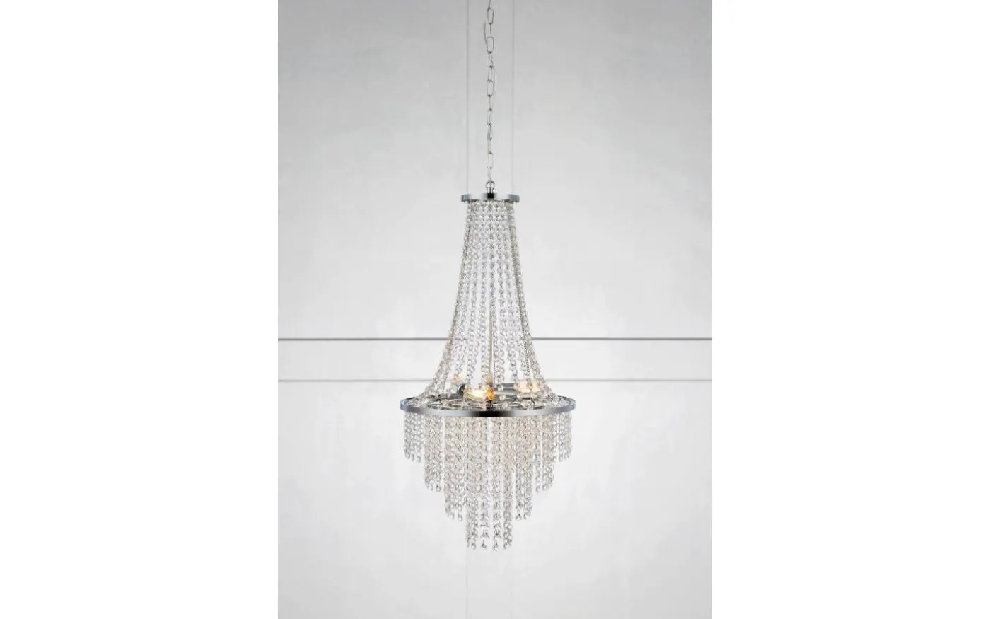 En elegant takkrona, från välkända Markslöjd, med klara prismor och stomme i blank, kromfärgad metall. Allingtons vackra prismor är gjorda av maskinskuret glas som avger en exklusiv och lyxig känsla! Med sin höjd på hela 130 cm passar den utmärkt i rum med högre takhöjd.