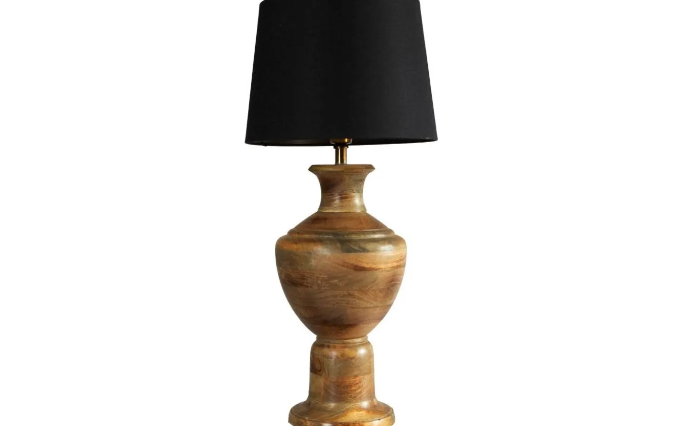 Lampfot Alma med klassisk svart skärm. Lampfoten är klassiskt urnformad i mango trä. Mangoträ kan variera i sin färg och det kan påverka finishen, varje lampa är unik. Brun, bränd träfinish. 1,8m svart plastsladd med strömbrytare ca 30cm från lampan. Lampans höjd inklusive skärm är 69cm och skärmens diameter är 30cm. E27 sockel. Max 40W. IP20. Ljuskälla ingår ej.