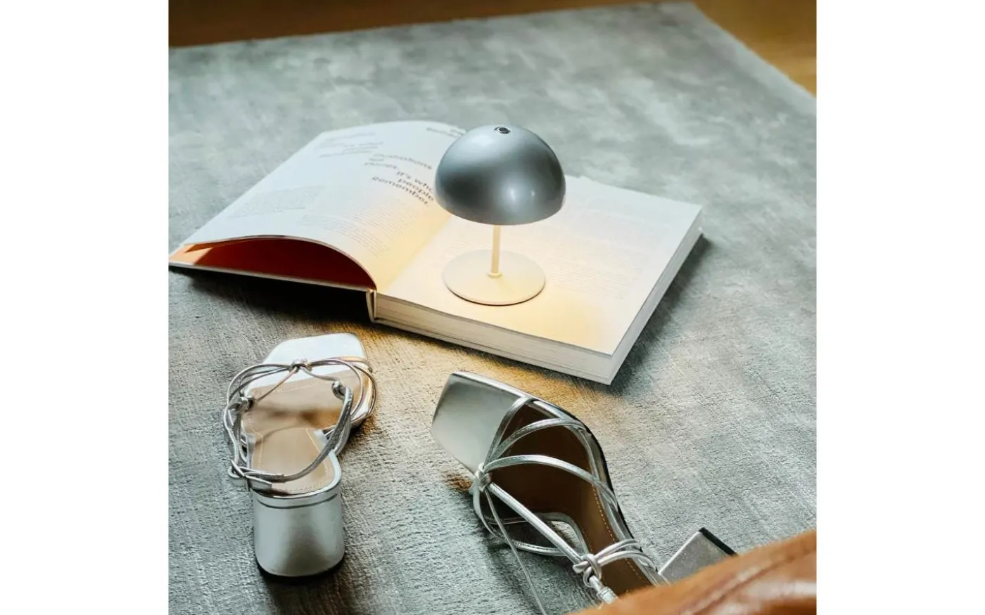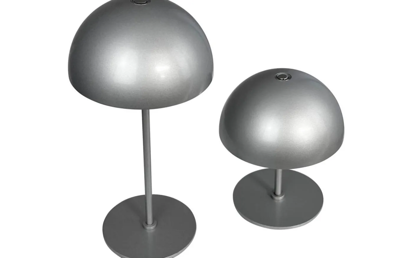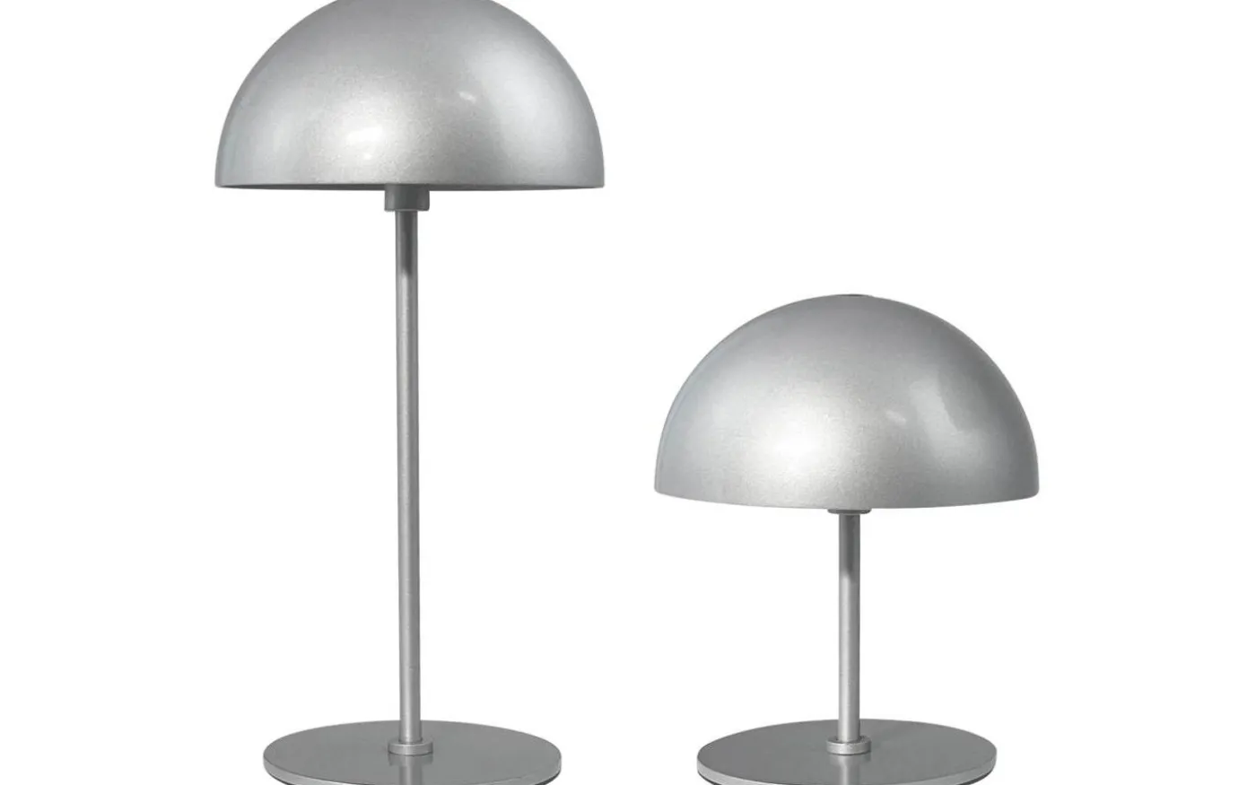Along från välkända Dyberg Larsen är ett paket med två stycken minibordslampor tillverkade av metall i en silverfärgad finish. Bordslamporna har integrerad LED som går att reglera i tre steg med hjälp av touch dimmern som sitter på lampskärmens ovansida.