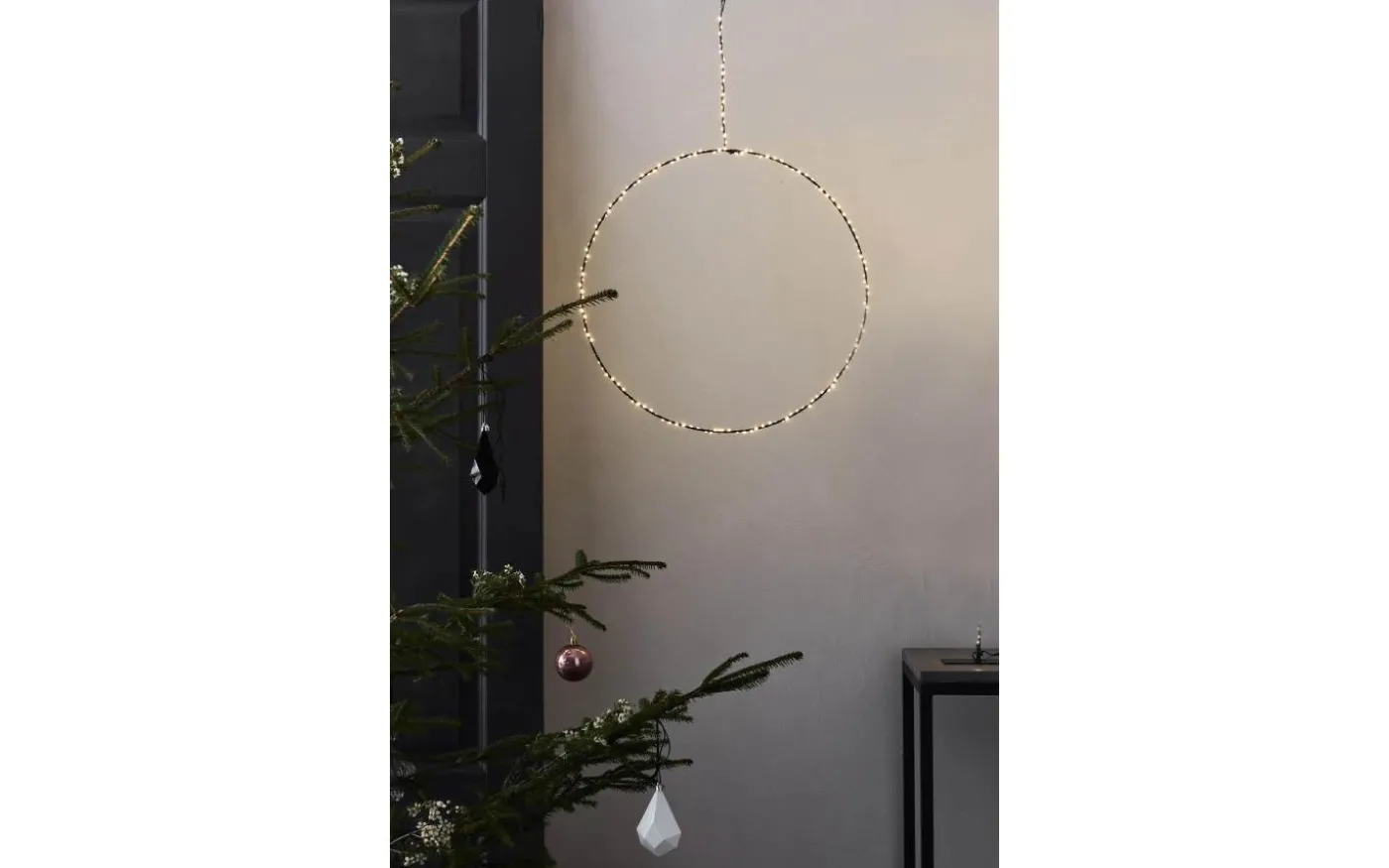 Alpha batteridriven pendel från Markslöjd har en metallring med små dekorativa ljuspunkter som avger ett härligt varmvitt ljussken.