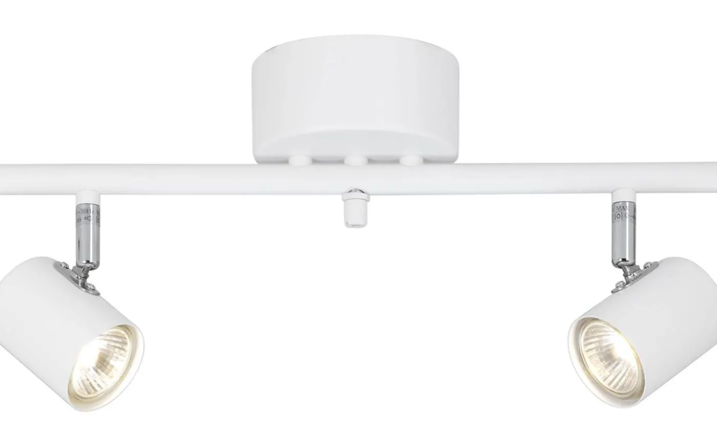 Denna takspotlight är rak och har två riktbara ljuskällor. Detta gör att den är utmärkt att placera i taket framför en fotovägg eller om du har konstverk du vill belysa. Den passar även bra i mindre utrymmen så som klädkammare eller wc. Ska du belysa större rum eller utrymmen rekommenderar vi att du väljer en större modell i serien med fler ljuskällor.