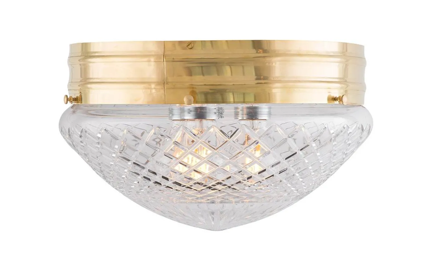 En klassisk kristallkupa i matterat klarglas med en slipad stjärna i toppen som ger ett mycket elegant och behagligt sken tillsammans med en ljuskälla av koltrådstyp. Detta droppformade glas förekom i vårt sortiment redan på 1890-talet.