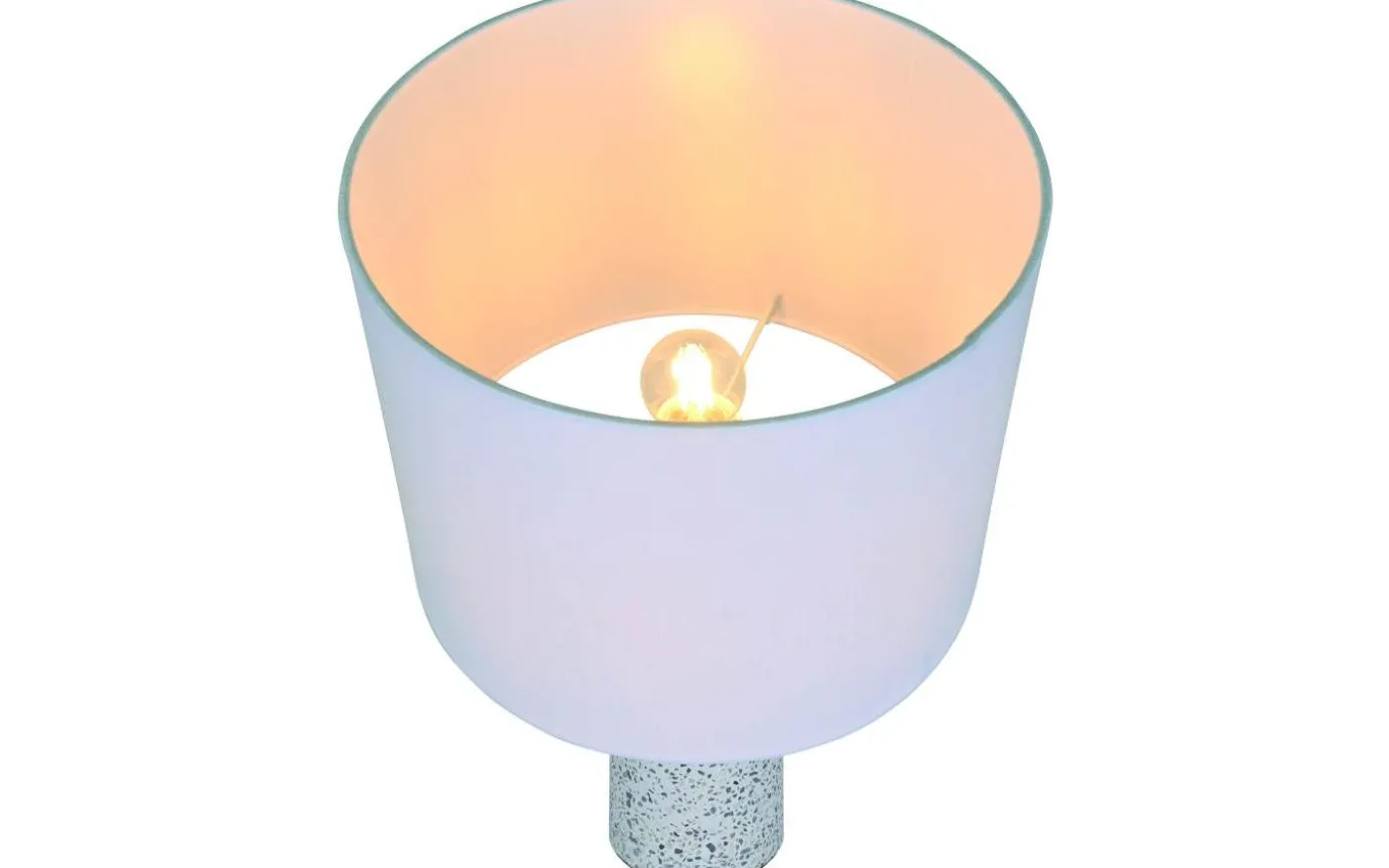 Antiga har en klassisk design med en modern twist. Lampan har en vacker terrazzofot och en klassisk tygskärm som ger ett mjukt och diffust ljus.