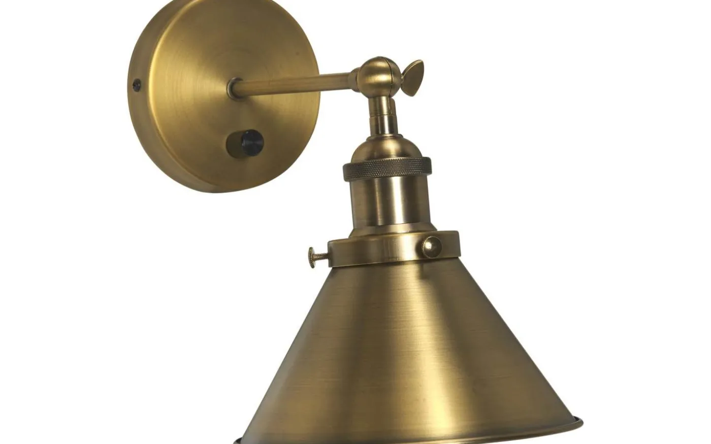 Klassisk vägglampa helt i antikmässing ytbehandlad metall. Nu i uppgraderat utförande med inbyggd dimmer som passar perfekt med våra egna LED ljuskällor. Med E27 lamphållare för inomhusbruk, IP20. Kabellängd 2m med platt EU-plugg, 220-240V~50Hz.