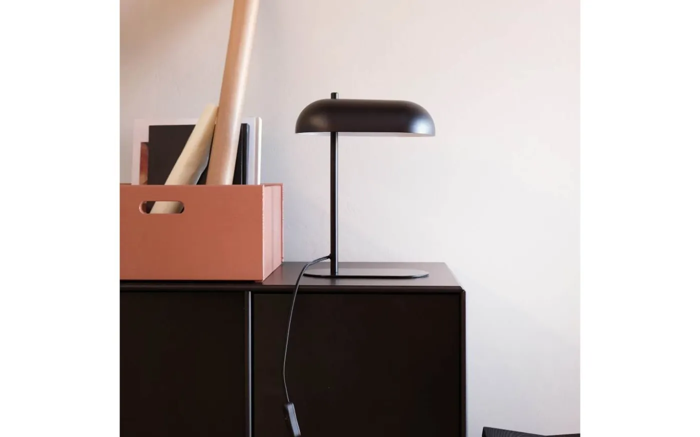Arch bordslampa i en vacker matt svart metall. Switch sitter på sladden.Designer Sabine Stougaard.