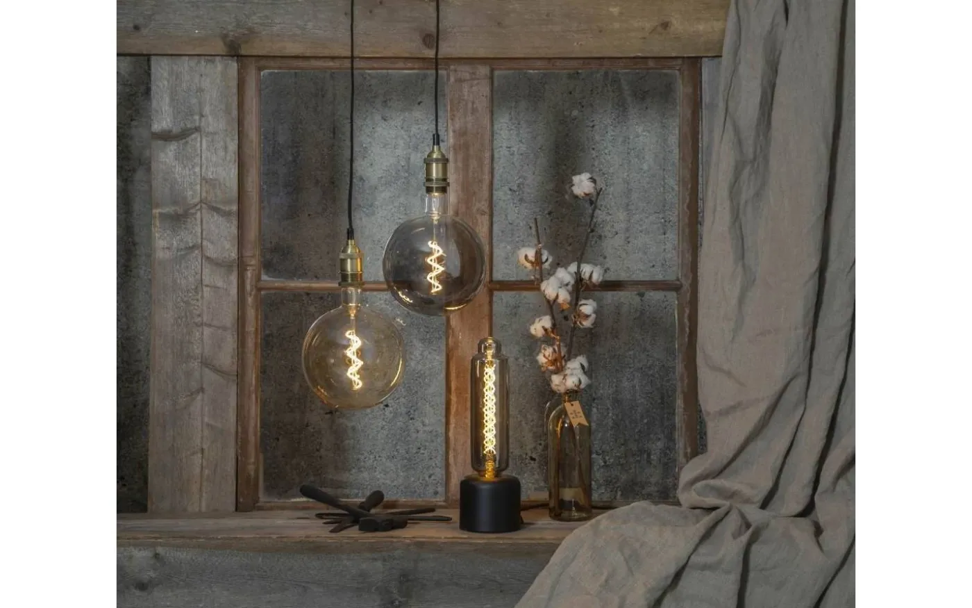 Tuff textilkabel med oxid sockel. Kabeln är 3,5 m.