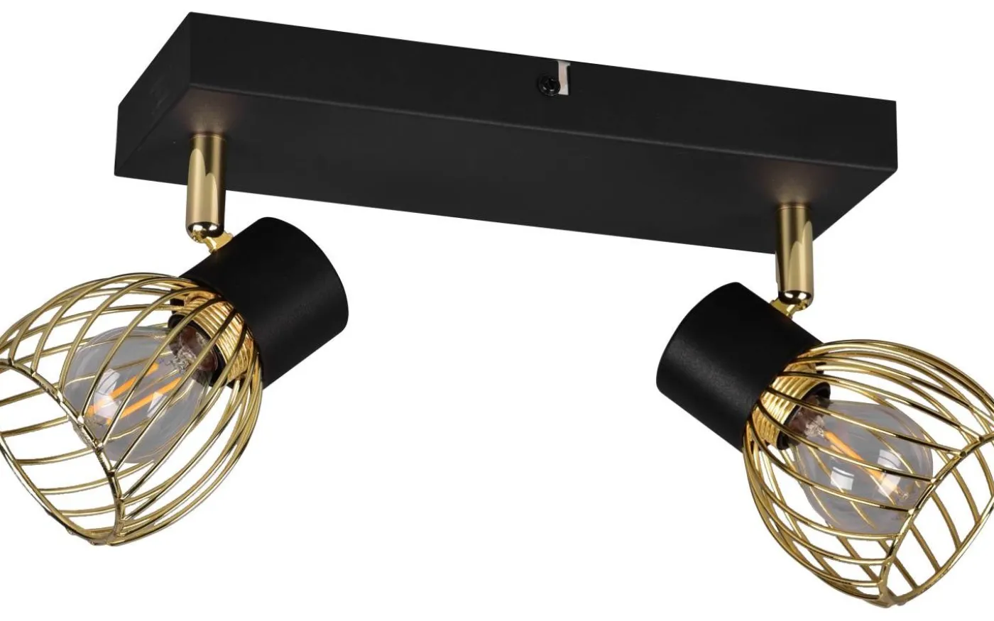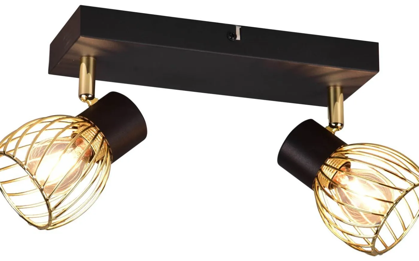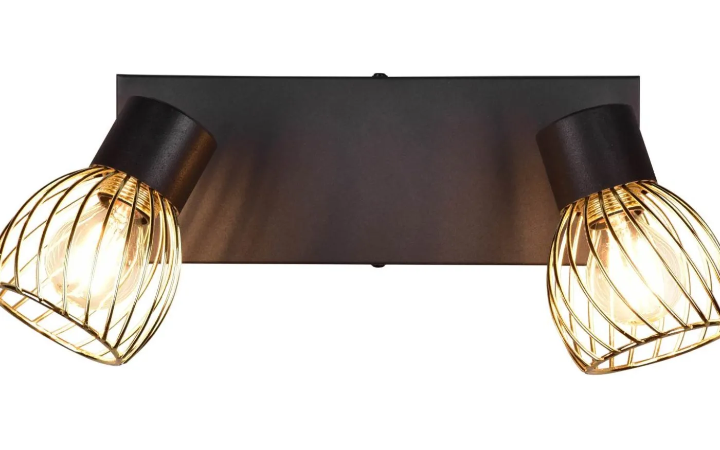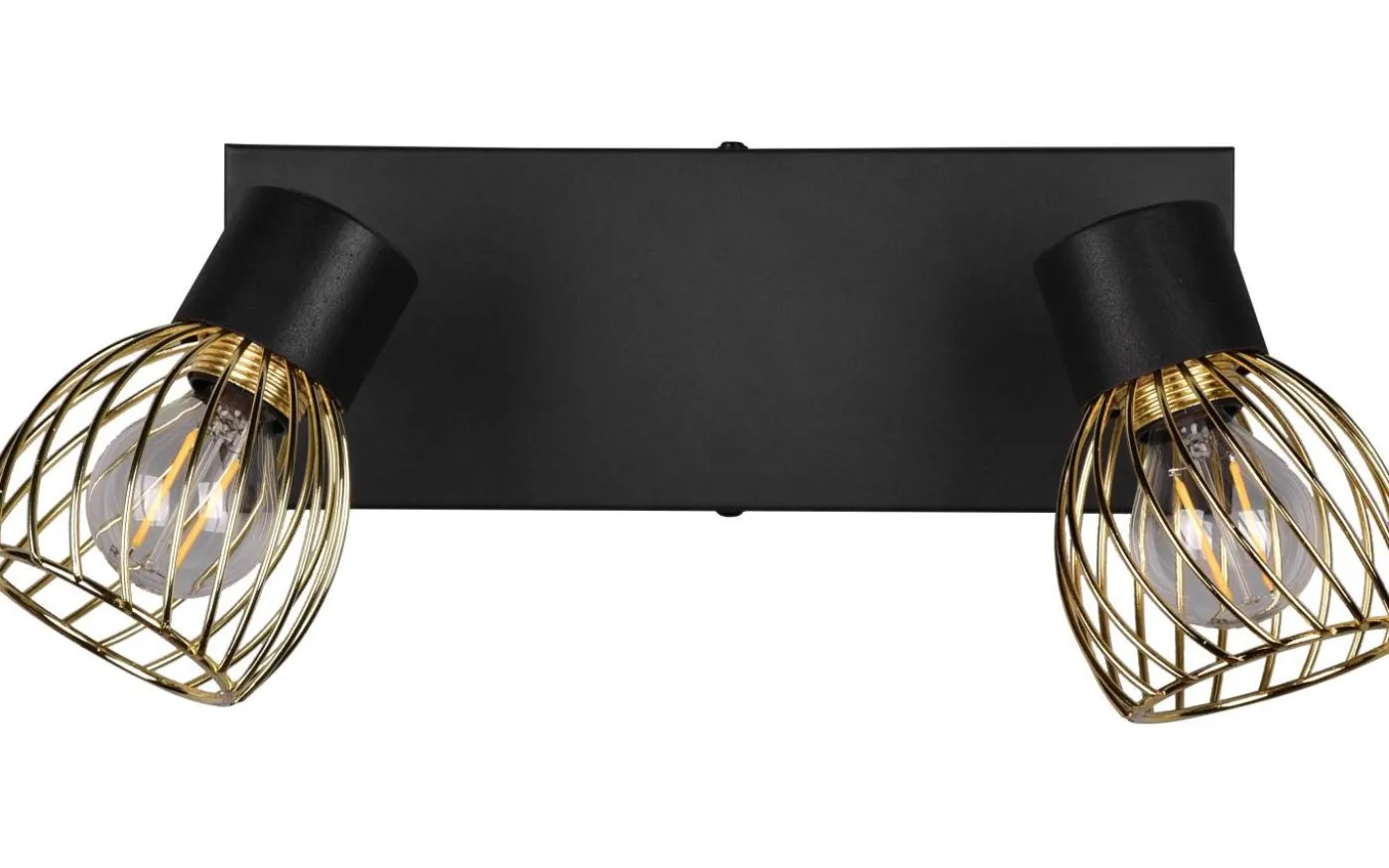 ARDON-spotlighten med två ljuskällor är en garanterad blickfångare i ditt hem och imponerar med sitt dekorativa metallhölje i industriell stil. Det intressanta ljusspelet som lyser på väggen eller taket skapar en speciell atmosfär i ditt vardagsrum eller sovrum. Med den moderna färgkombinationen av matt svart och guld smälter ljuset enkelt in i befintliga inredningsstilar. För modern och pålitlig belysning rekommenderas en LED-lampa. Den erbjuder hög ljuskvalitet, är mångsidig och övertygar med jämn belysning. Dess långa livslängd och låga värmeutveckling gör den till det perfekta valet för en mängd olika användningsområden. Ljuskälla: exklusivt 2x E14 · max. 10W. Extra information: Takmontering, IP20, Lampa(or) ingår ej