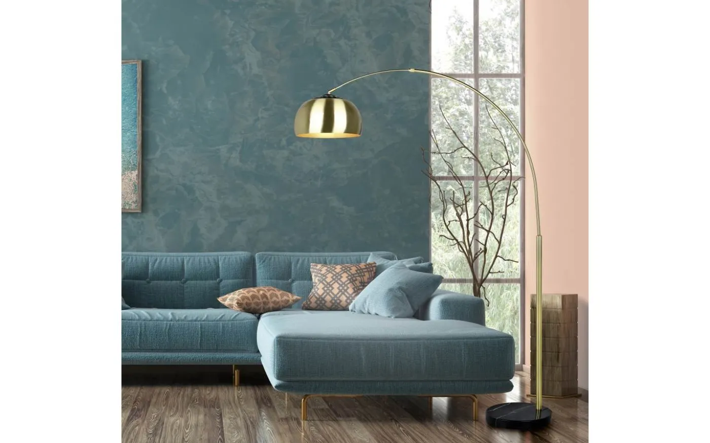 Med hjälp av sin tidlösa design kan den eleganta båglampan ARGENTINA harmoniskt och stilfullt integreras i befintliga heminredningsstilar. Oavsett om den används som läslampa bredvid fåtöljen eller som en alternativ ljuskälla bredvid soffan, ger lampan ett behagligt ljus och skapar därmed en mysig atmosfär. Lampan kan bekvämt tändas och släckas med en fotpedal. Både stommen och lampskärmen är jämnt placerade i matt mässing och avrundas av en sockel i matt svart. För modern och pålitlig belysning rekommenderas en LED-lampa. Den erbjuder hög ljuskvalitet, är mångsidig och övertygar med jämn belysning. Dess långa livslängd och låga värmeutveckling gör den till det perfekta valet för en mängd olika användningsområden. Ljuskälla: exklusiv 1x E27 · max. 60W. Extra information: Fotpedal, IP20, Lampa(or) ingår ej