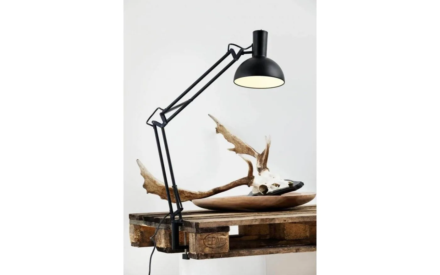 Lampan levereras med ett väggfäste, ett fäste för att kunna montera lampan direkt mot kanten på ett bord samt en lampfot för att kunna ha lampan ståendes. Alla dessa alternativ gör att lampan blir otroligt funktionell och kan användas både som läslampa och som arbetsbelysning. Dessutom blir den en riktigt snygg inredningsdetalj i stilren, dansk design – oavsett placering!