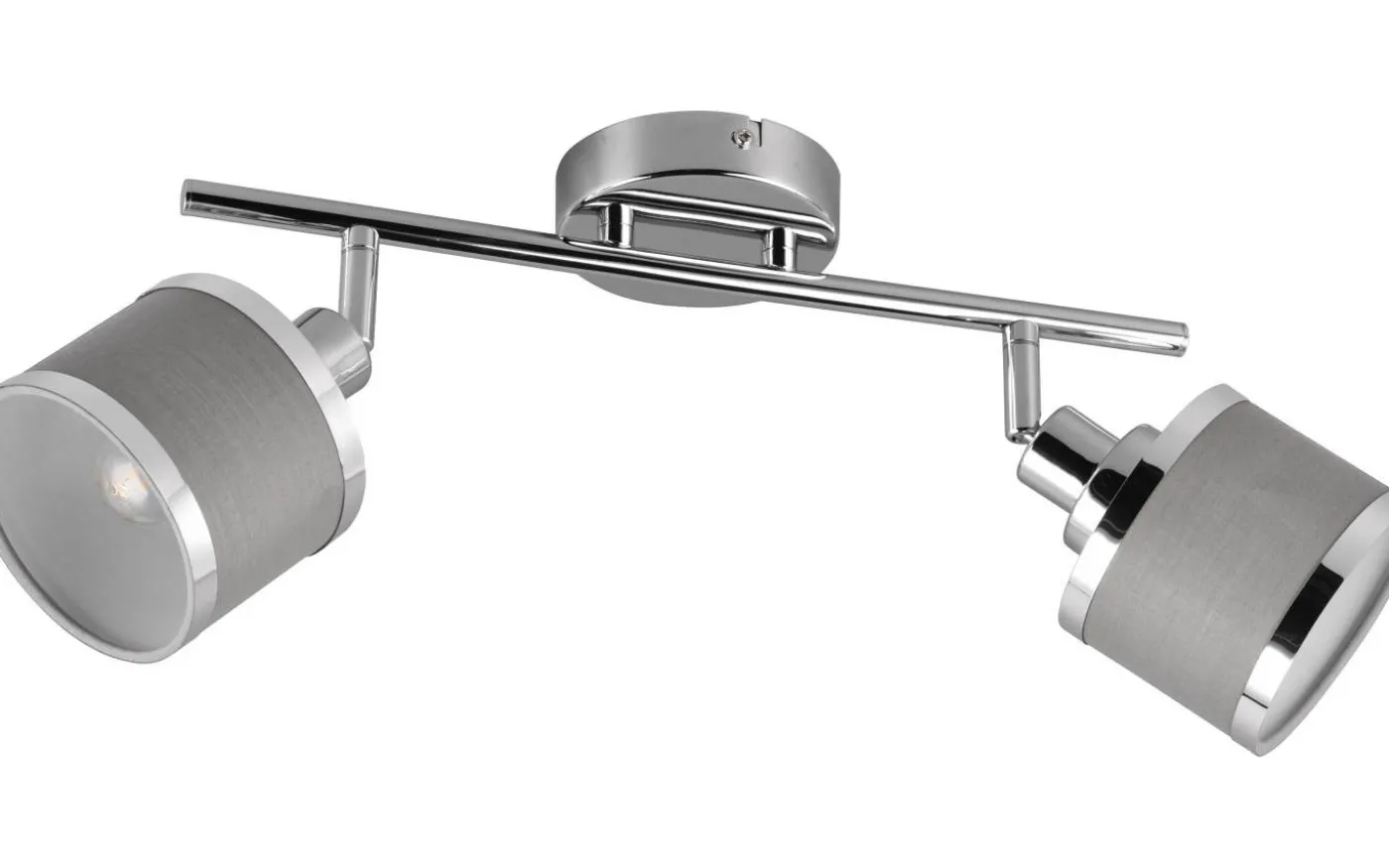 Armaturserien AROSA – varm känsla kombinerad med ljus! Kombinationen av cylindriska former och fint textiltyg utstrålar elegans och lysande harmoni. Spotlighten med två ljuskällor ger även varma reflektioner och ett mysigt, inbjudande ljusspel i taket eller på väggen i ditt sovrum eller vardagsrum. De eleganta färgnyanserna i krom och grått ger ditt hem en individuell touch och understryker wow-effekten. För modern och pålitlig belysning rekommenderas en LED-lampa. Den erbjuder hög ljuskvalitet, är mångsidig och övertygar med jämn belysning. Dess långa livslängd och låga värmeutveckling gör den till det perfekta valet för en mängd olika användningsområden. Ljuskälla: exklusivt 2x E14 · max. 28W. Extra information: Takmontering, IP20, Lampa(or) ingår ej