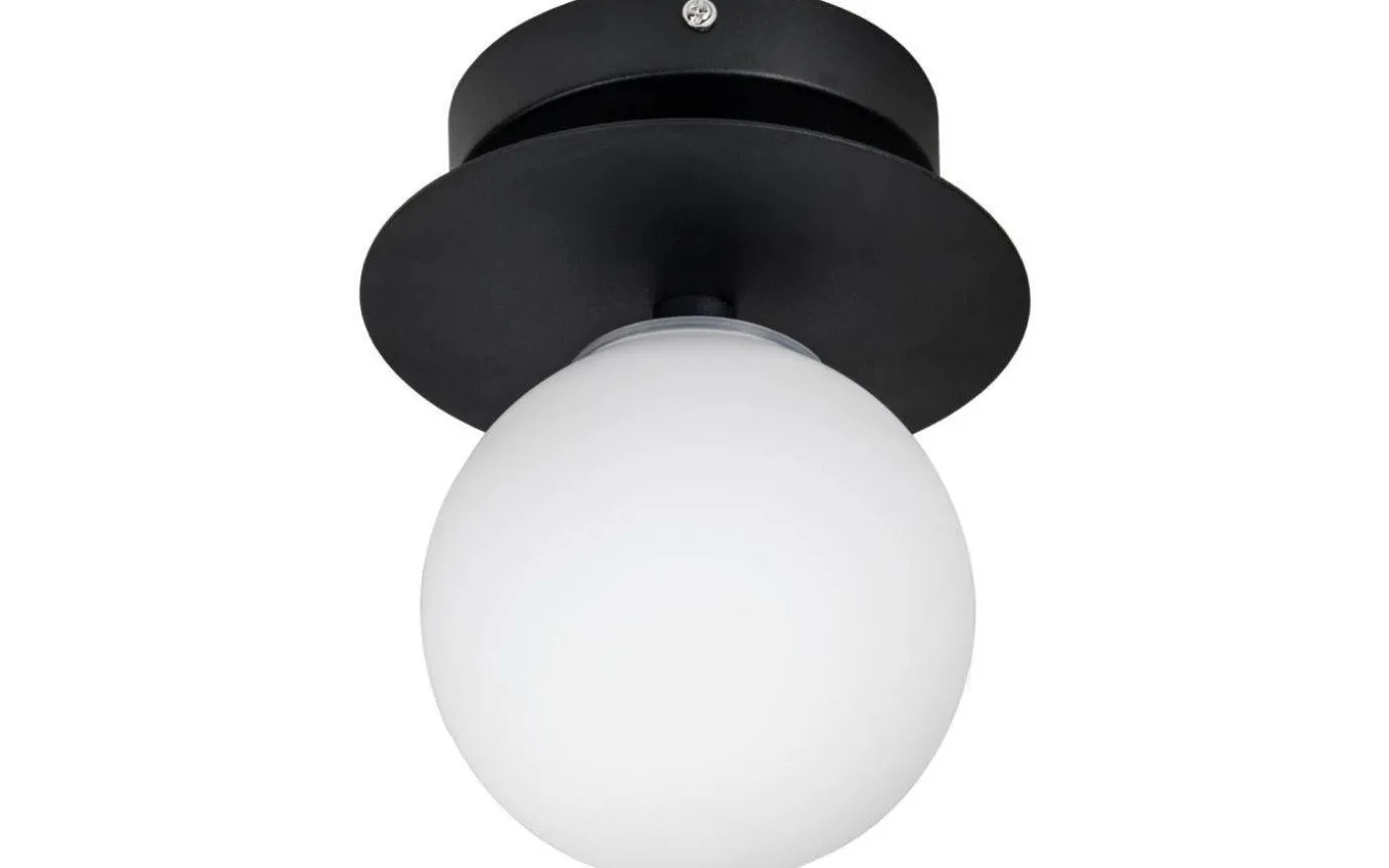 Art Deco badrumslampa, från Globen Lighting, gör sig lika vacker i taket som på väggen. Stommen i svart metall och kombinationen med den opalvita glaskupan gör denna badrumslampa både modern och tidlös!