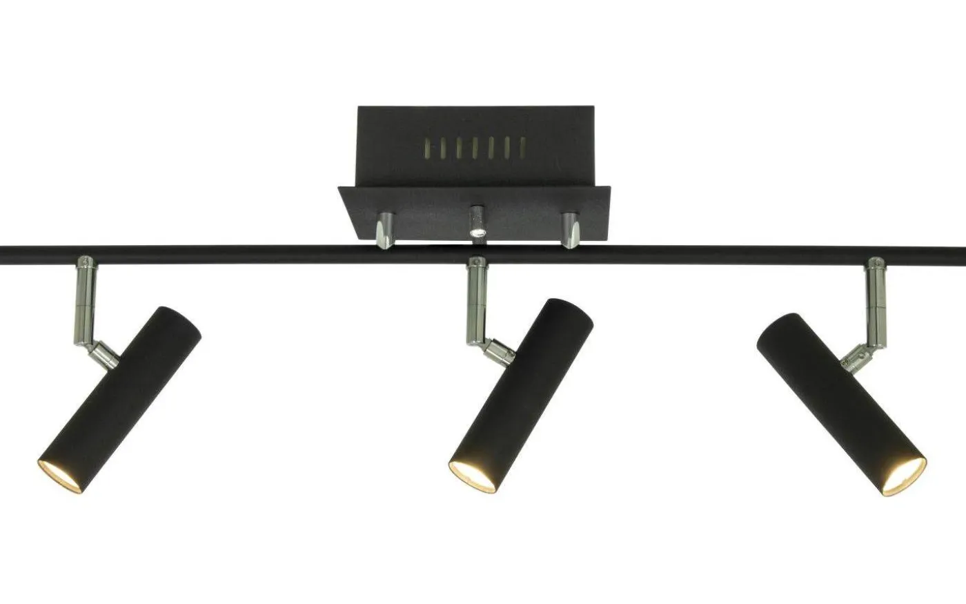 Artic spotlight i svartlackerad metall med detaljer i krom. 3 ställbara spothuvud i rad med LED -ljuskälla som ger behagligt varmt vitt ljus. Kan dimmras. Bygelupphäng med kopplingsplint.