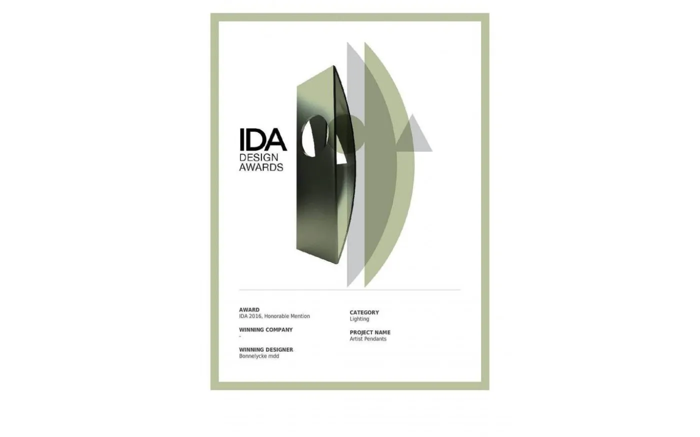 *Prisbelönad vid IDA Design Awards 2016 i två kategorier (Lighting samt Home Interior Products – Lighting) samt vinnare vid 2017 Reddot Design Award och vid 2017 European Product Design Award.