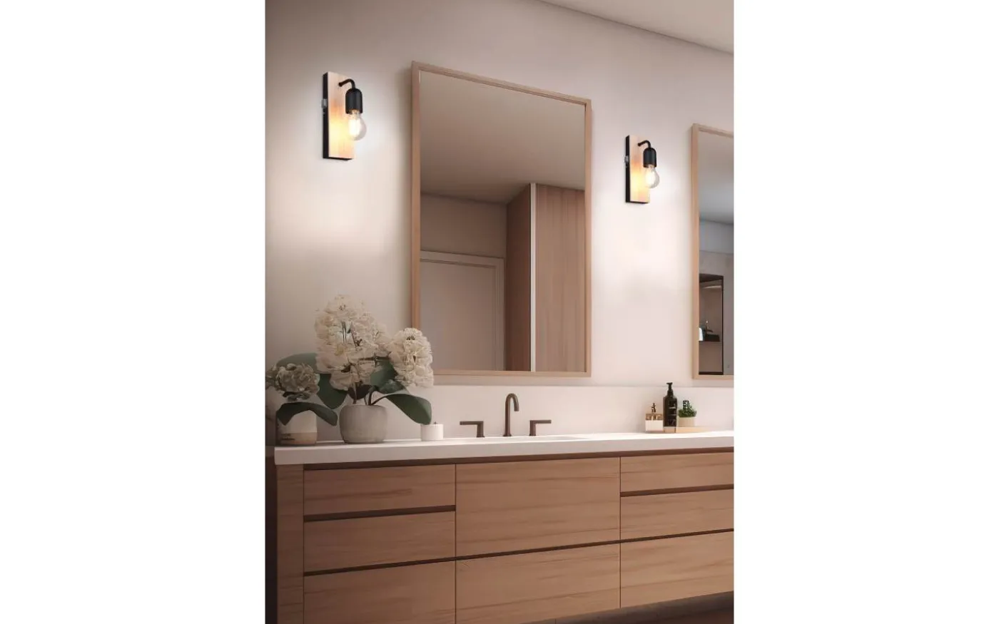 Vägglampan ARTURO kombinerar naturligt trä med elegant metall för att skapa en speciell accent i alla badrum. Med en IP44-skyddsklassning är den idealisk för fuktiga rum och mångsidig i användning. Dess sofistikerade design säkerställer att ljuset lyser direkt in i omgivningen och skapar en behaglig atmosfär. ARTURO kombinerar funktionalitet med estetiskt tilltalande och ger ditt badrum ett modernt, elegant utseende. Det naturliga träet och den mattsvarta metallen förhöjer alla badrumsinredningar. För modern och pålitlig belysning rekommenderas en LED-lampa. Den erbjuder hög ljuskvalitet, är mångsidig och övertygar med jämn belysning. Dess långa livslängd och låga värmeutveckling gör den till det perfekta valet för en mängd olika användningsområden. Ljuskälla: exklusiv 1x E27 · max. 10W. Extra information: IP44, Lampa(or) ingår ej, Strömbrytare, Väggmontering