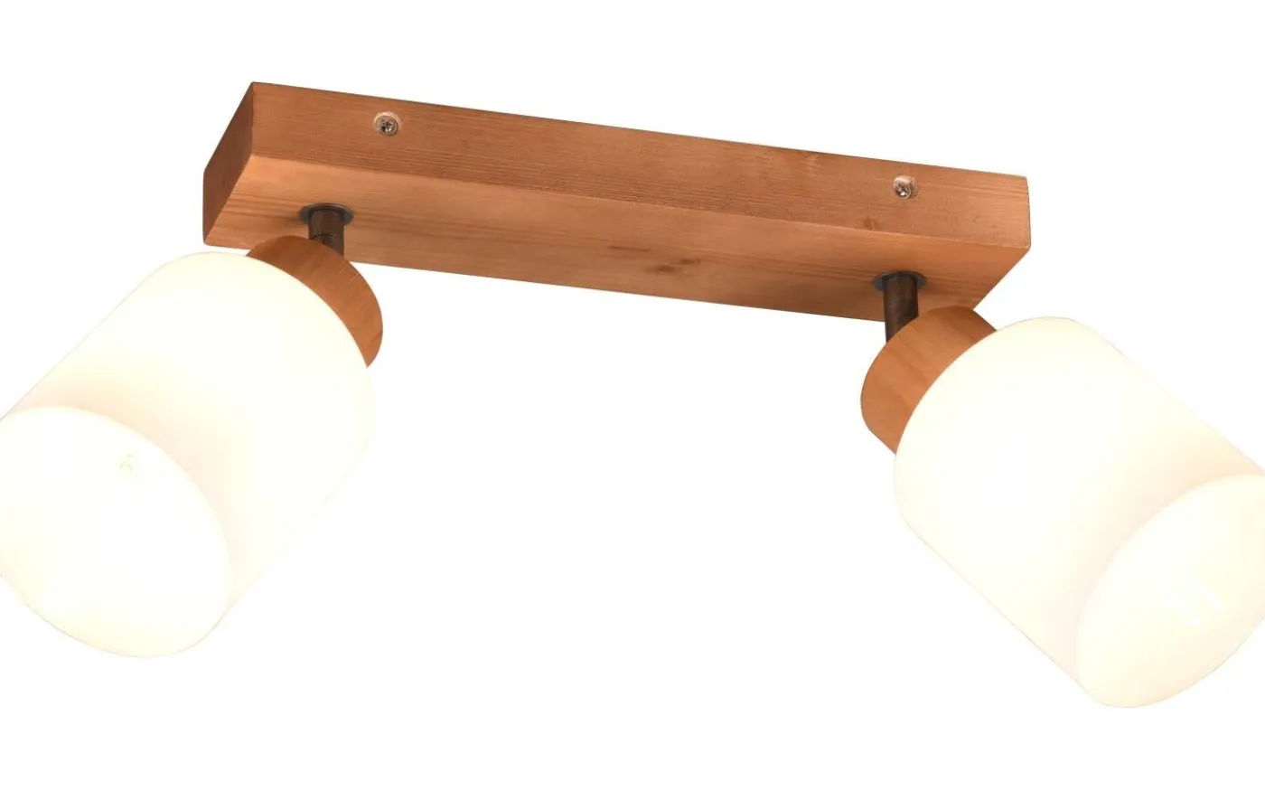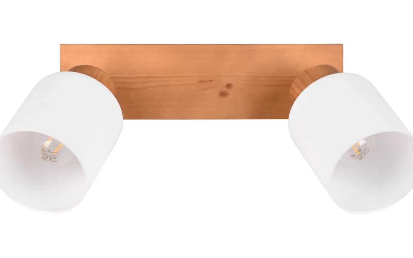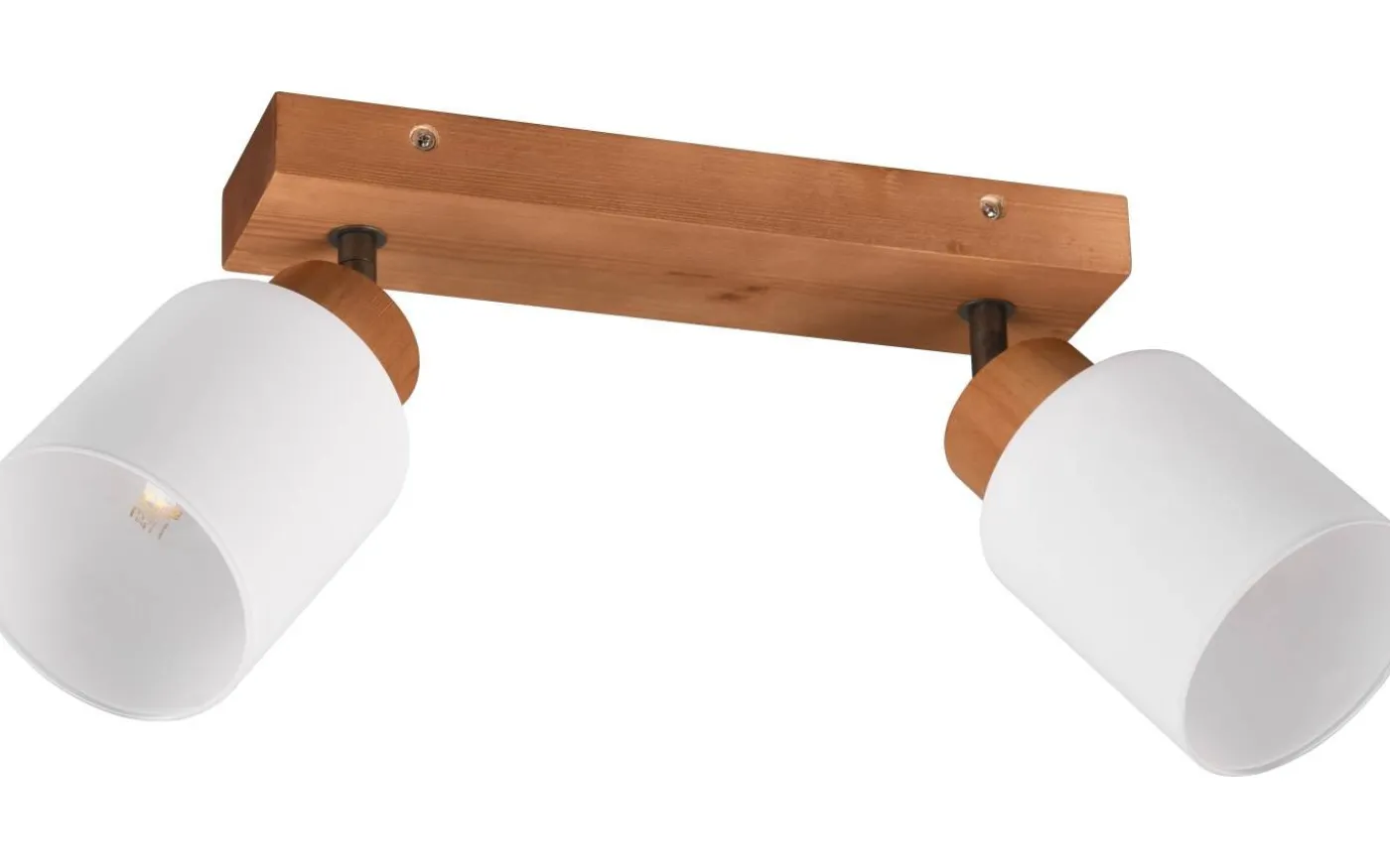 Mysigt och variabelt ljus tack vare ASSAM spotlight-serien. Spotlighten med två lampor övertygar med sina justerbara lampskärmar och sätter fokus i önskade riktningar med behagliga ljusaccenter. Oavsett om det är i hallen, vardagsrummet eller sovrummet – med den moderna blandningen av trä och vitt glas ser lampan tidlös och modern ut och skapar en unik boendeatmosfär. För modern och pålitlig belysning rekommenderas en LED-lampa. Den erbjuder hög ljuskvalitet, är mångsidig och övertygar med jämn belysning. Dess långa livslängd och låga värmeutveckling gör den till det perfekta valet för en mängd olika användningsområden. Ljuskälla: exklusivt 2x E14 · max. 25W. Extra information: IP20, Lampa(or) ingår ej, Vägg- och takmontering