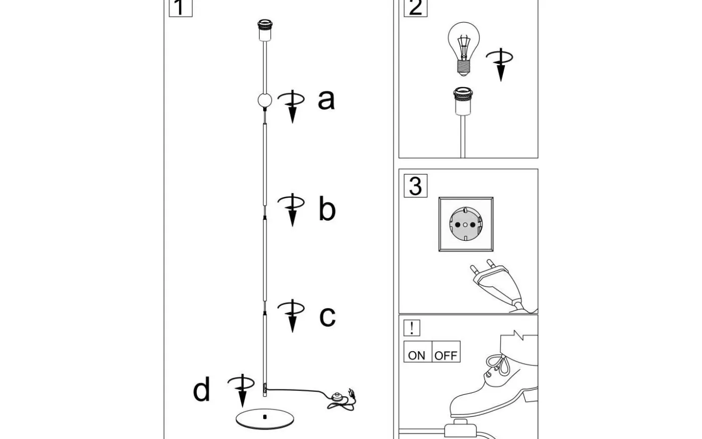Golvlampan levereras med en 2m lång transparent kabel med transparent golvbrytare och stickkontakt.