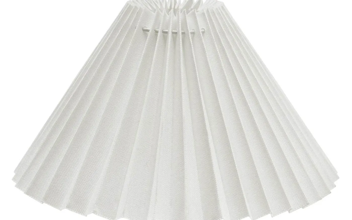 Astrid lampskärm från PR Home är en veckad lampskärm av tyg med linnestruktur. Lampskärmen har en hårt laminerad ljus insida som ger ett vackert ljussken.