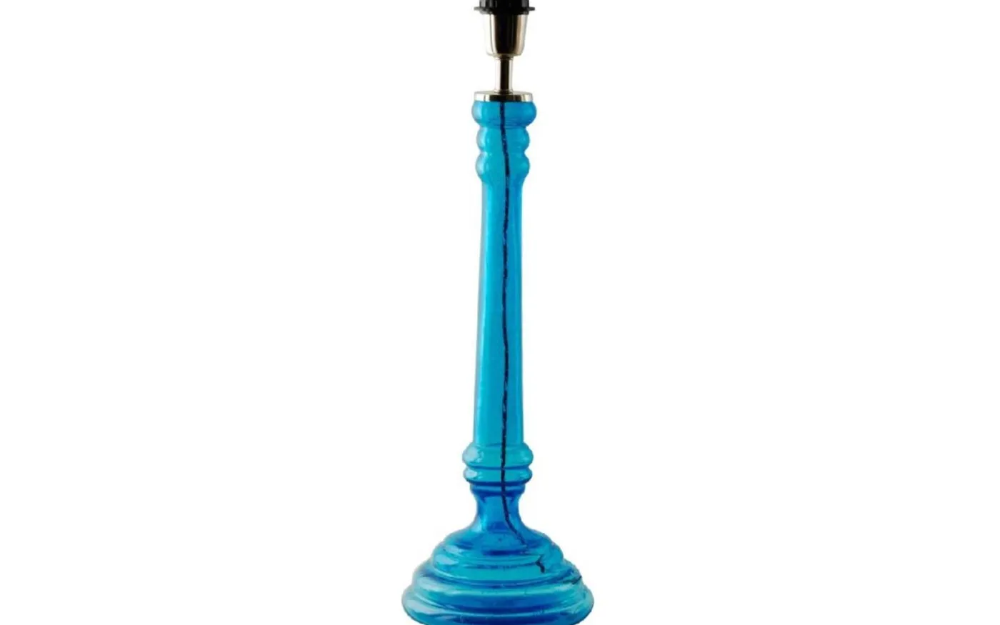 Elegant lampfot i vackert blått glas med klassisk kandelaber-design. Den höga, smala formen med dekorativa detaljer skapar en sofistikerad och tidlös känsla. Höjd 58 cm. Den genomskinliga blå färgen tillför både färg och ljus till rummet, perfekt för att skapa en elegant och stilren atmosfär i hemmet.