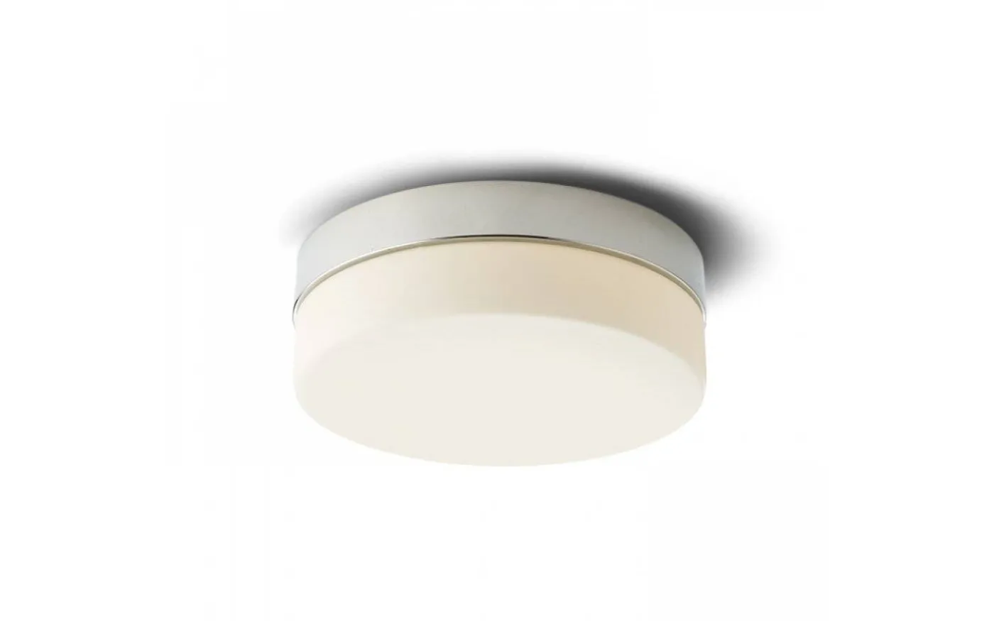 Armaturen har en bas i krom och opalfärgat glas. AWe avger ett kraftfullt och bländfritt ljus med 14W integrerad LED motsvarande 580 Lumen och en varmvit färgtemperatur på 3000 Kelvin. Med kapslingsklass IP44 är armaturen lämplig för våtrum.