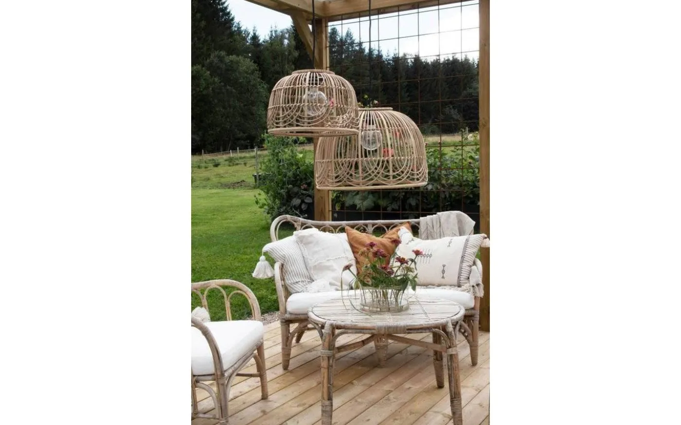 Vackra skärmen Bali, från välkända Globen Lighting, är gjord av naturligt vacker rotting. Denna modell har en diameter på 35 cm och passar precis lika bra över ett mindre köksbord som utomhus över loungegruppen. Tänk på att rottingen är obehandlad och som alla naturmaterial kommer skärmens utseende förändras och få en patina av väder och vind. Vi rekommenderar att du tar in skärmen under höst- och vinterhalvåret för att skydda den då den är som mest utsatt.