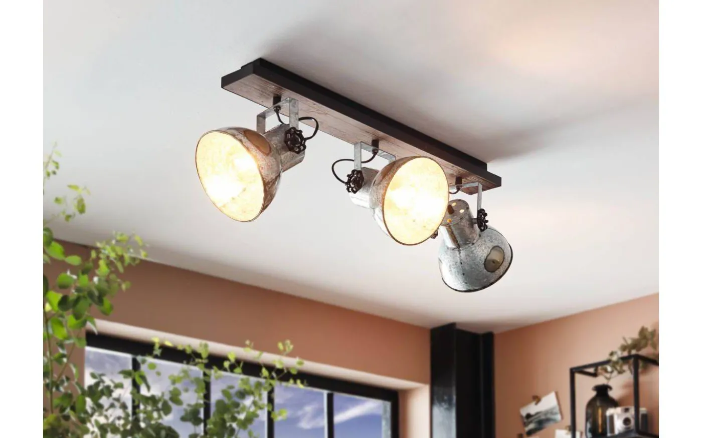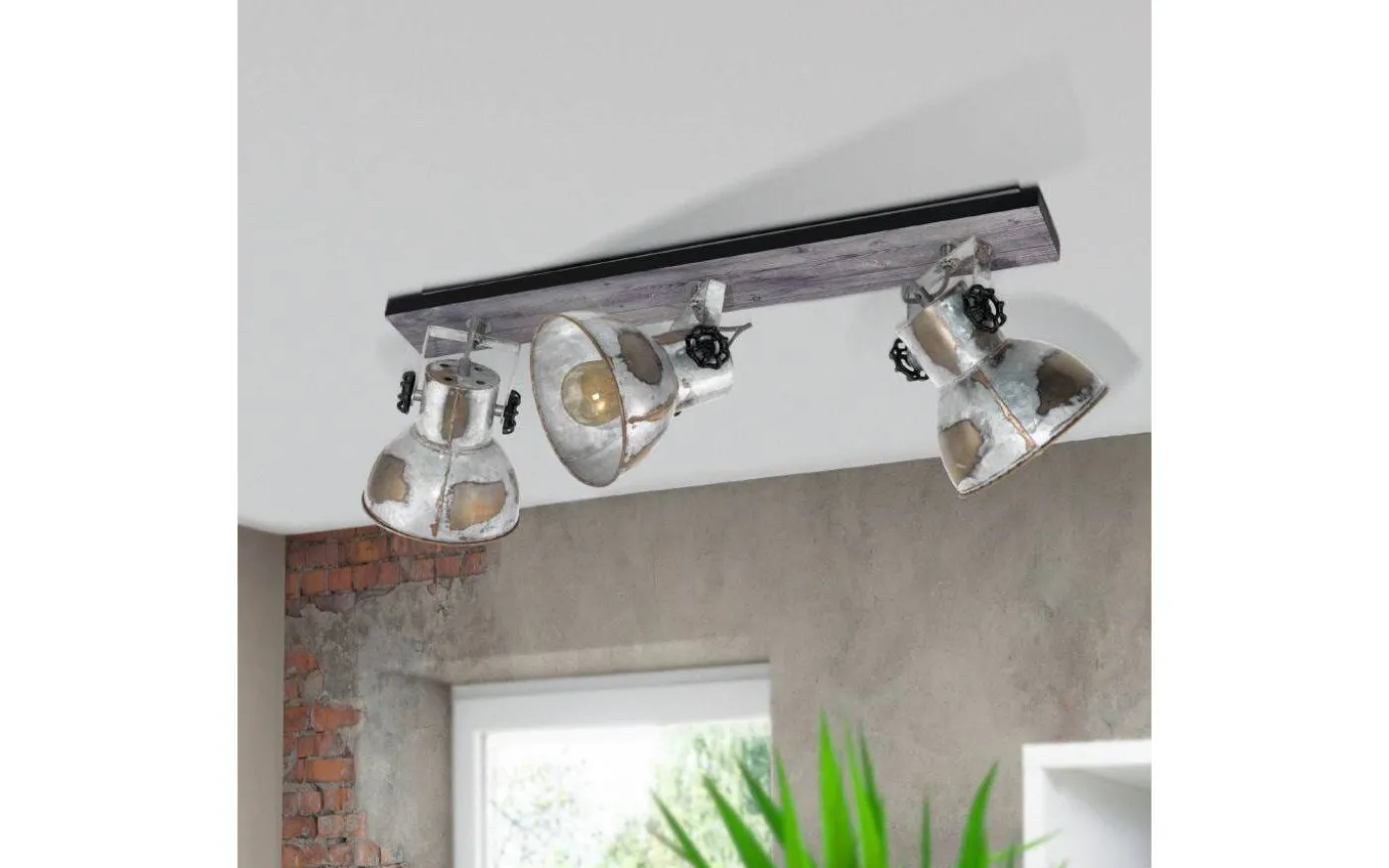 Barnstaple takspotlight från Eglo är en tuff takspotlight med bas av trä kombinerat med tre stycken lampskärmar av stål i antik zink finish. Lamphuvudena är reglerbara så du enkelt kan rikta ljuset efter önskemål och behov.