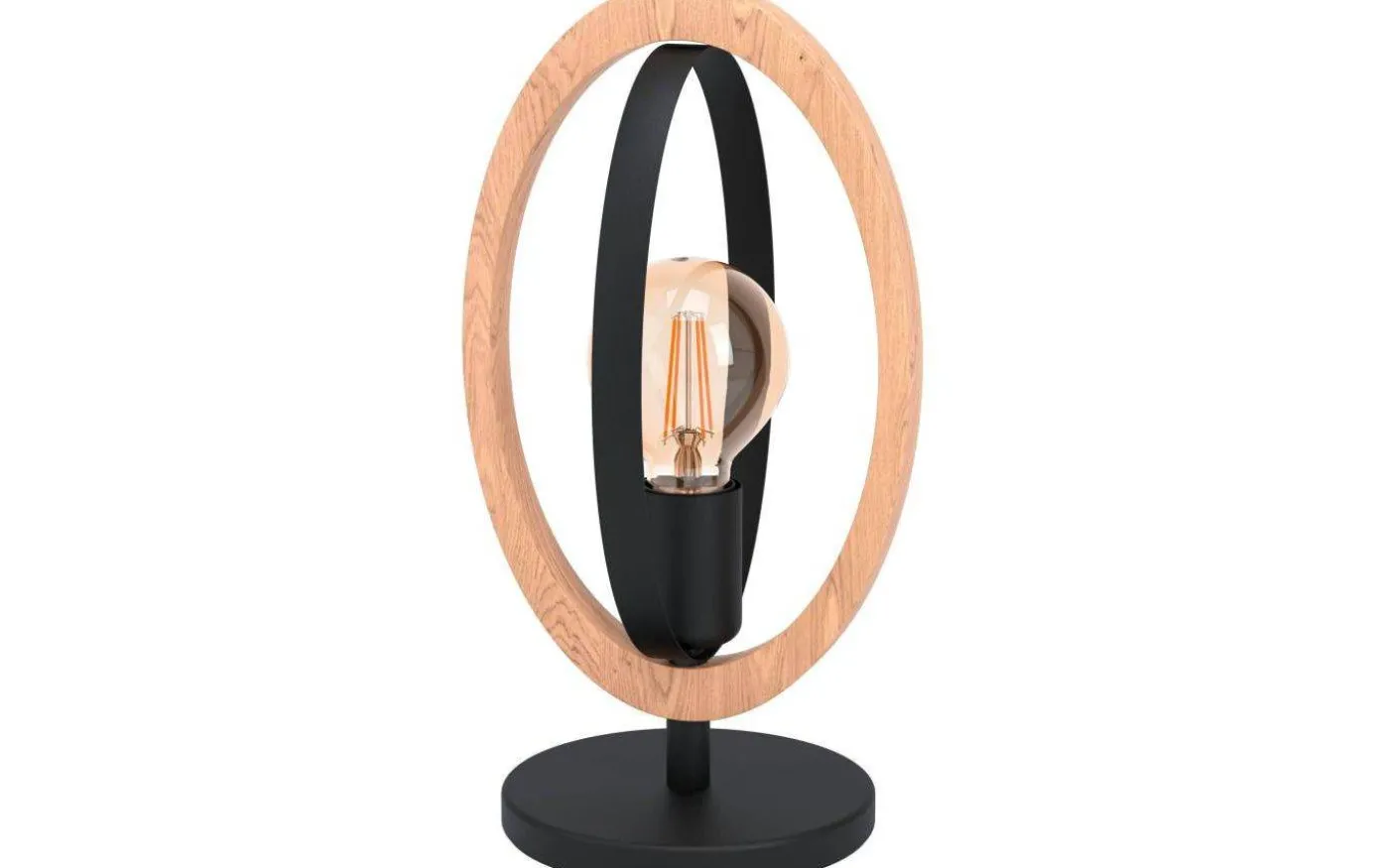 Basildon bordslampa från Eglo är en bordslampa av svart stål med detalj i trä. Kombinera med en dekorativ ljuskälla för bästa resultat!