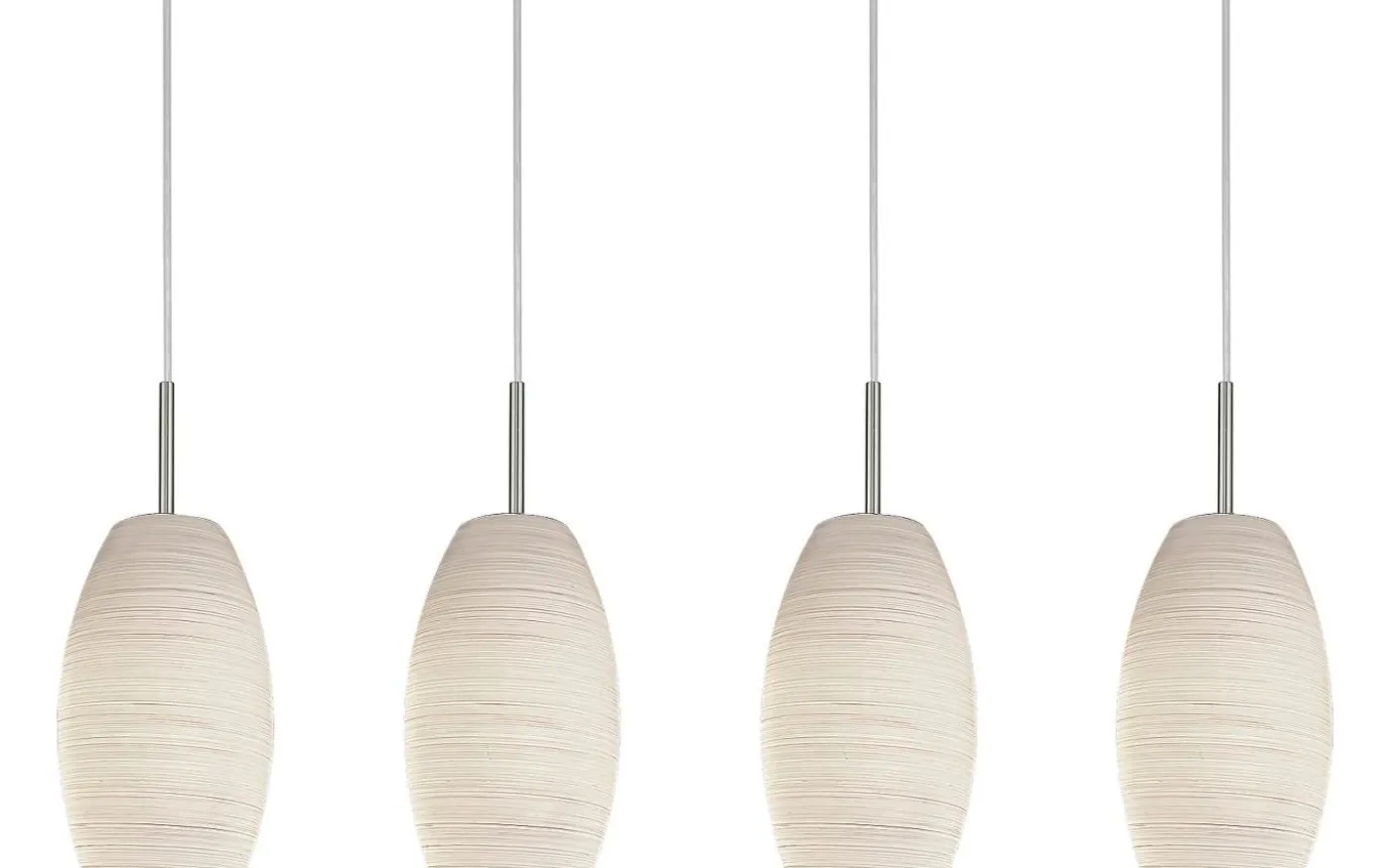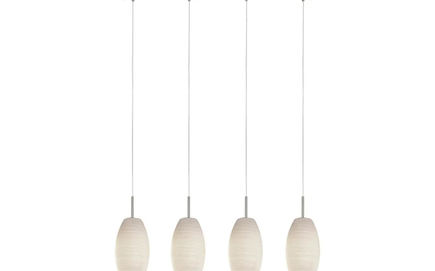 Taklampan BATISTA 3 har ett avlångt takfäste i matt nickel med fyra runda vita glasskärmar dekorerade med en glasavtorkningsteknik. Med sin enkla design smälter taklampan sömlöst in i olika inredningsstilar och ger mysig belysning i vardagsrummet eller över ett långbord i matsalen.