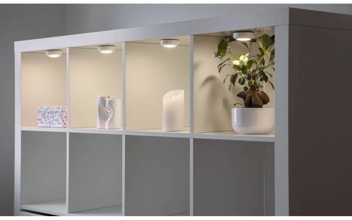 Varje spotlight är 6,9 cm i diameter och 2,6 cm hög och avger ett varmvitt ljussken med en ljusstyrka på 40 lumen.
