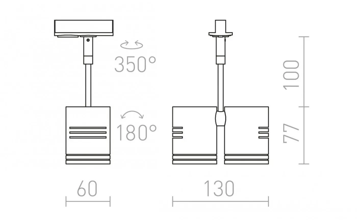 Spotlight för en 1-fasskena som kommer i tre olika färger.