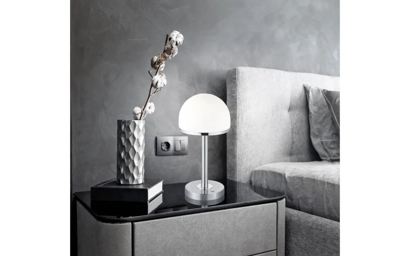 Bordslampan BERLIN imponerar med sin enkla och klassiskt inspirerade form. Den integrerade 4-vägs touchdimmern gör att ljusstyrkan kan justeras stegvis. Tack vare sin enkla design kan lampan enkelt integreras i olika inredningsstilar. Två identiska bordslampor på vardera sidan av soffan eller sängen ser eleganta ut och skapar harmoni i rummet. Bordslampan har en höjd på 39 cm och en diameter på 19,5 cm. Armaturen i matt nickel har en lampskärm av vitt glas, som avger ett jämnt ljus. Dessutom använder armaturerna modern LED-teknik, vilket står för hög ljuskvalitet. LED-ljuskällor kännetecknas av lång livslängd och låg värmeutveckling. Ljuskälla: inklusive 1x SMD, 4,5W · 1x 450lm, 3000K. Extra information: 4-nivå pekfunktion, IP20