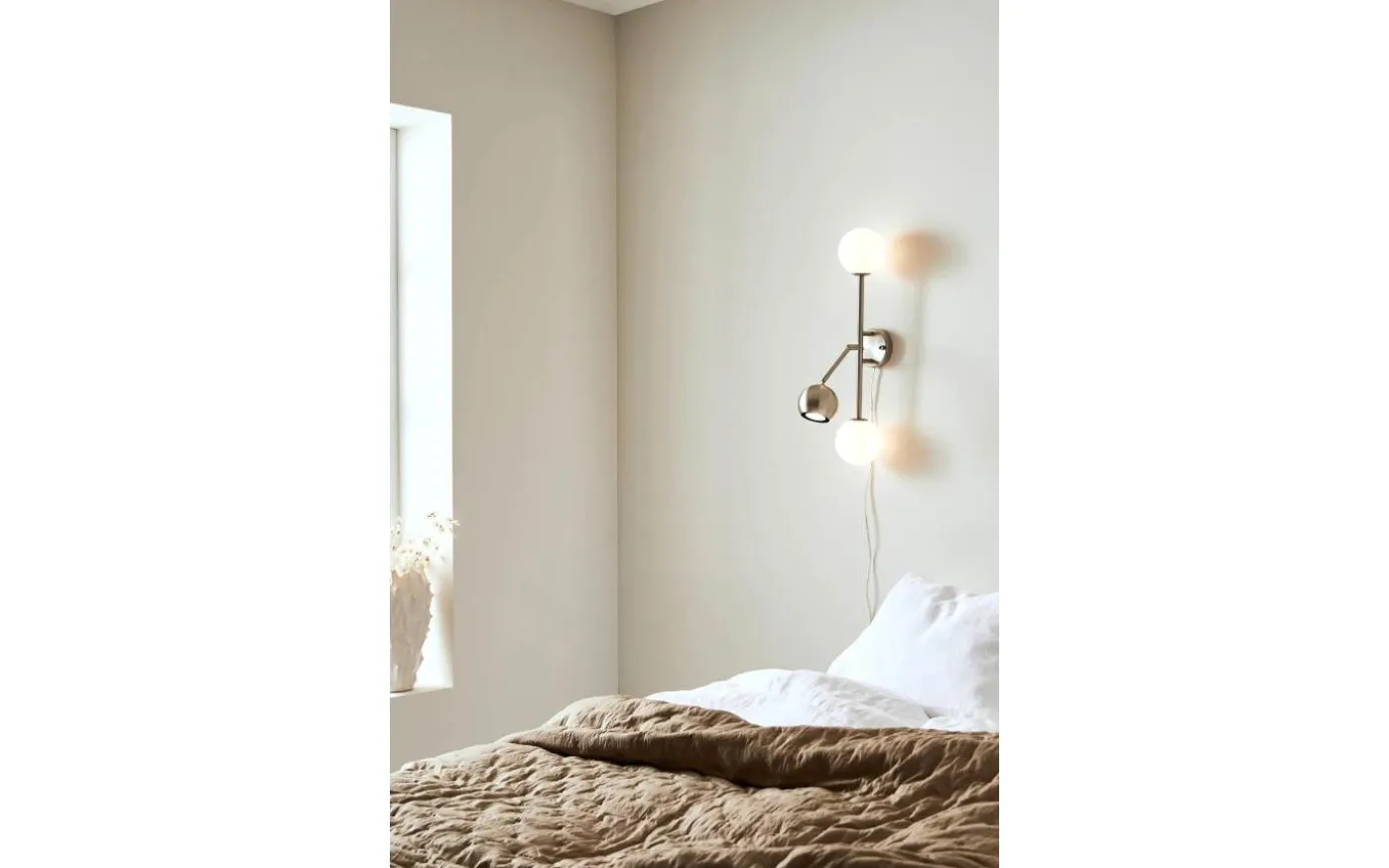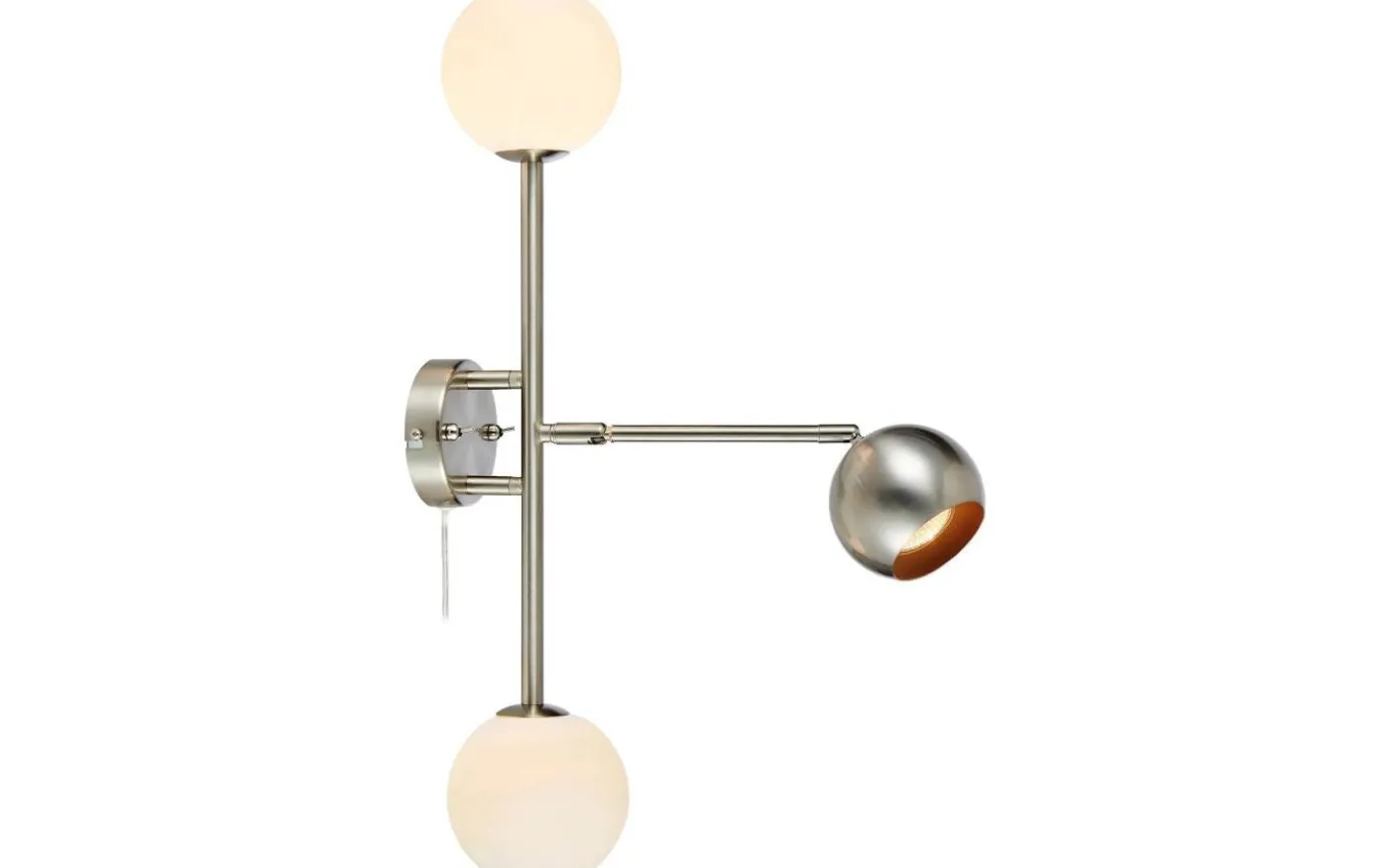 Beside vägglampa från Markslöjd är en stålfärgad bas med 2st vita opal färgade glas och 1st skärm i metall. 2st G9 och 1st GU10 behövs för den fina vägglampan.