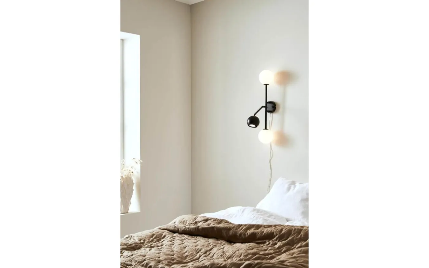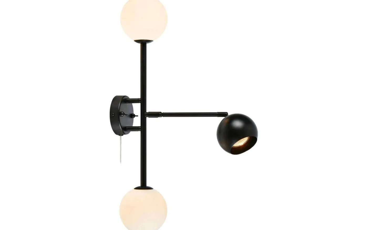 Beside vägglampa från Markslöjd är en stålfärgad bas med 2st vita opal färgade glas och 1st skärm i metall. 2st G9 och 1st GU10 behövs för den fina vägglampan.