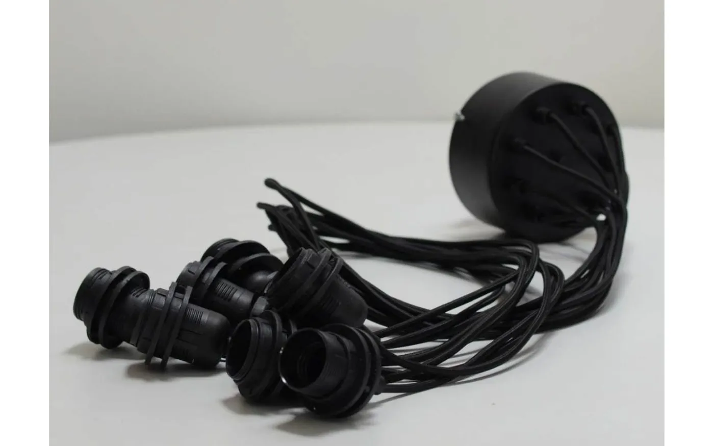 Bistro takupphäng från välkända Hallbergs Lighting of Sweden är ett matt, svart takupphäng med nio hängande pendlar med E27 sockel. Varje pendel har 1,5m lång sladd som går att justera på höjden efter eget önskemål och behov.
