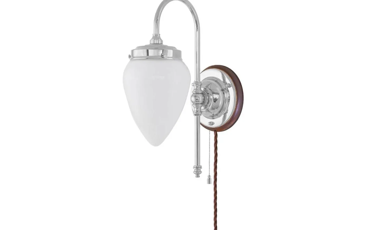 Klassisk väggarmatur tillverkad helt i mässing. Främst avsedd som allmän- eller stämningsbelysning i exempelvis en korridor eller sittande på var sin sida om en spegel eller tavla. För fast montage. Kan kompletteras med knoppledning och stickkontakt för vanligt vägguttag.