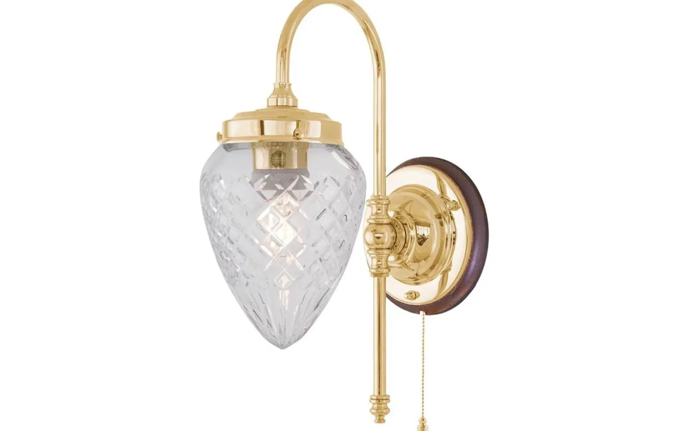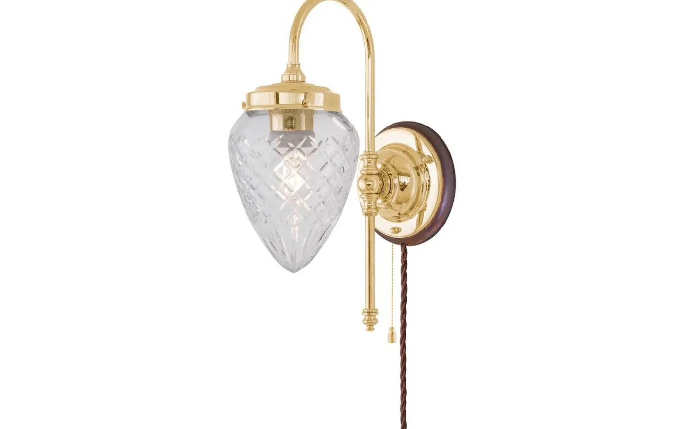 Klassisk väggarmatur tillverkad helt i mässing. Främst avsedd som allmän- eller stämningsbelysning i exempelvis en korridor eller sittande på var sin sida om en spegel eller tavla. För fast montage. Kan kompletteras med knoppledning och stickkontakt för vanligt vägguttag.