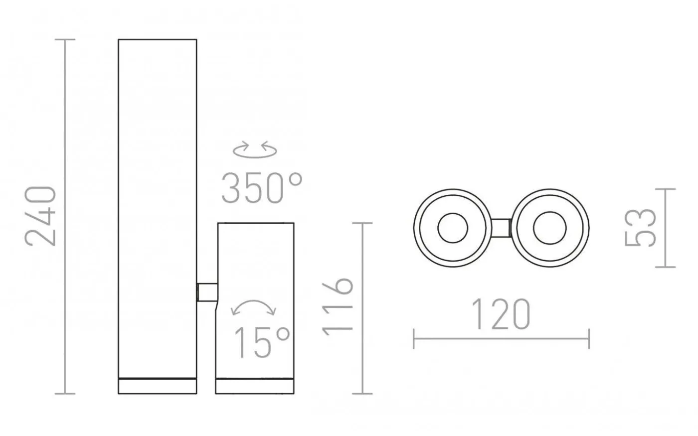 Takarmatur med en fast och en riktbar ljuskälla med inbyggd LED.