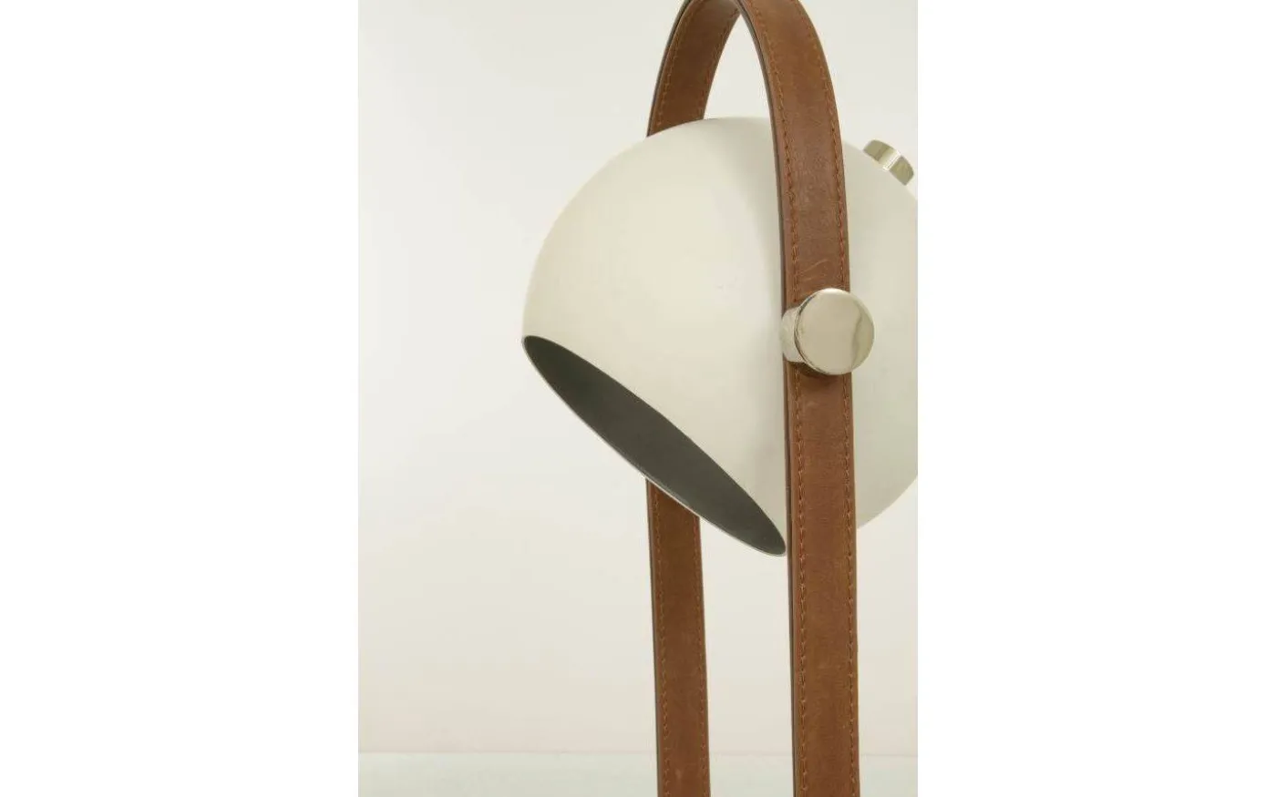 Bow bordslampa i vitlackerad metall med detaljer i krom och brunt läder. Lamphuvudet kan justeras till önskat läge. Max 7W GU10, ingår ej. Sladd med mellanströmbrytare och stickpropp. Trendig bordslampa i skandinavisk design.