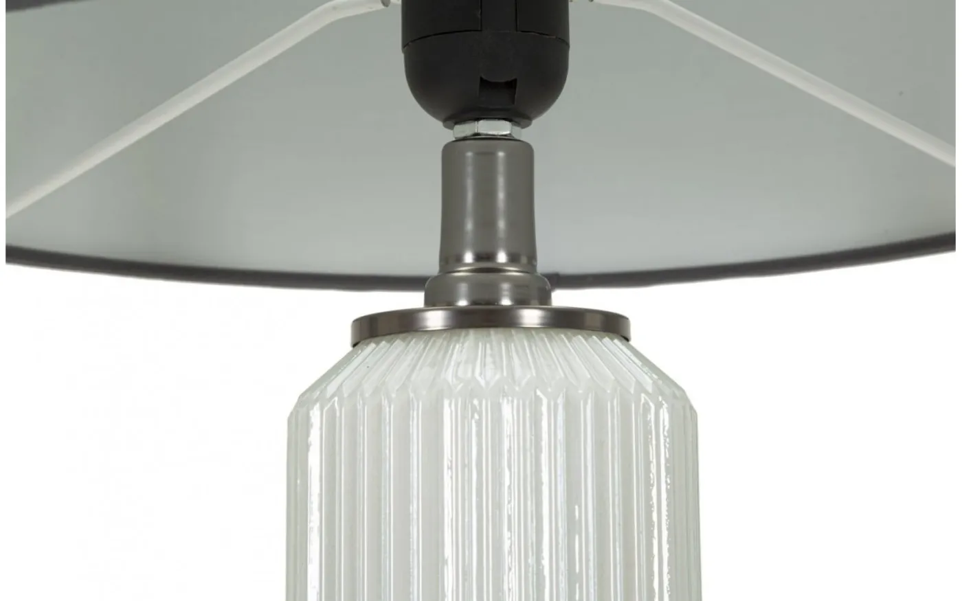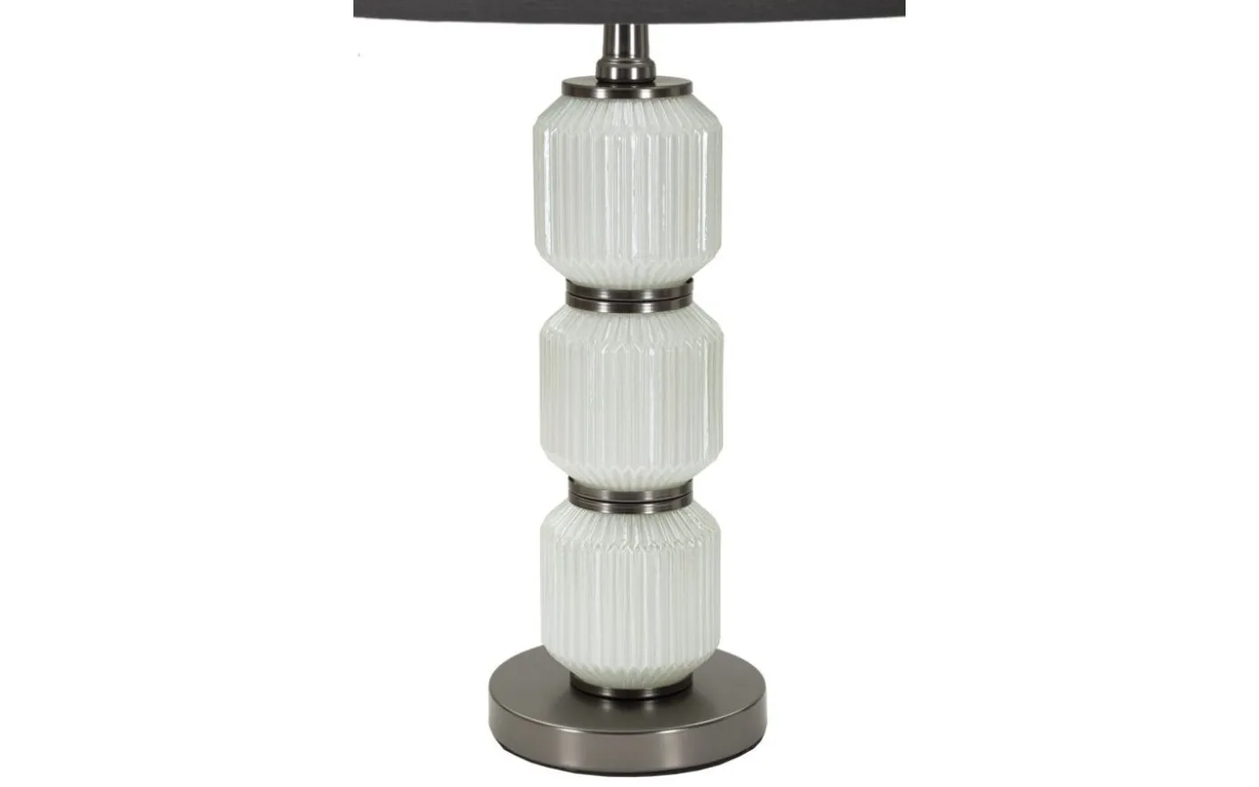 Elegant bordslampa med vit glasfot och grå sammetsskärm utstrålar modernitet, perfekt för att lysa upp varje hörn av ditt hem med stil.