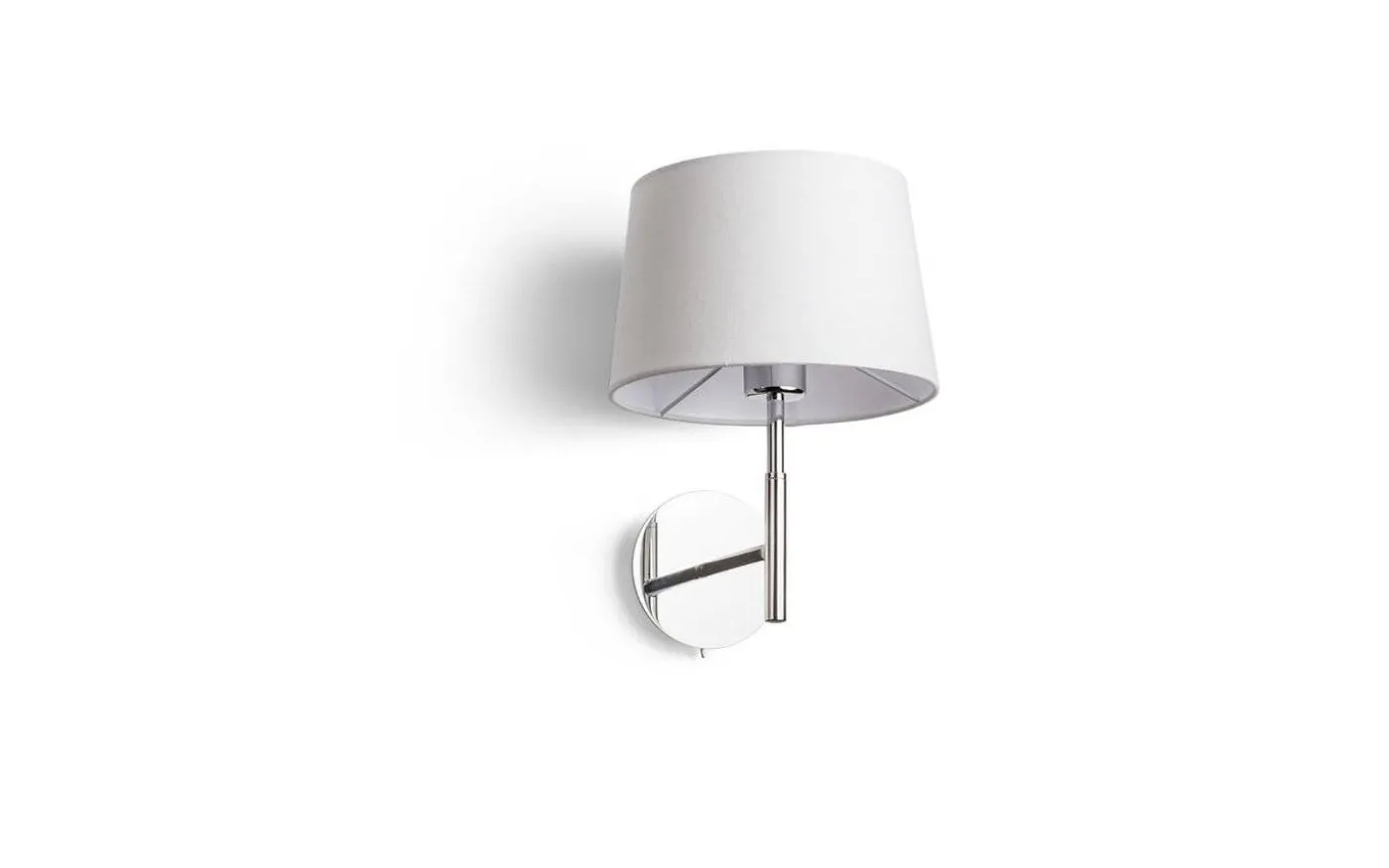 Funktionell vägglampa i krom med texturerad vit textilskärm.