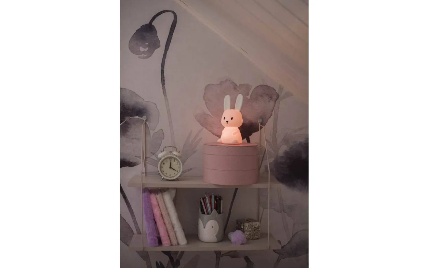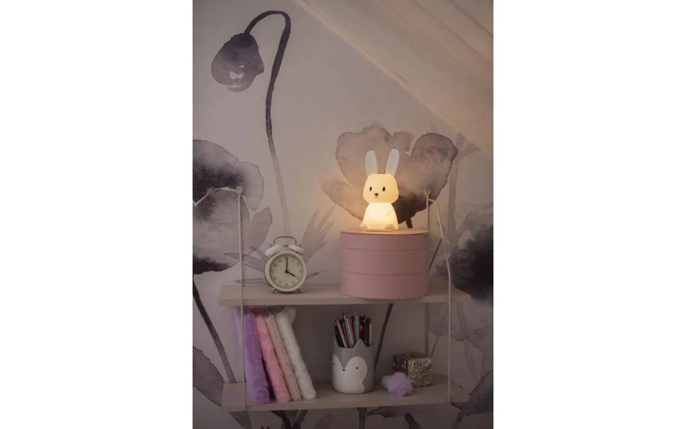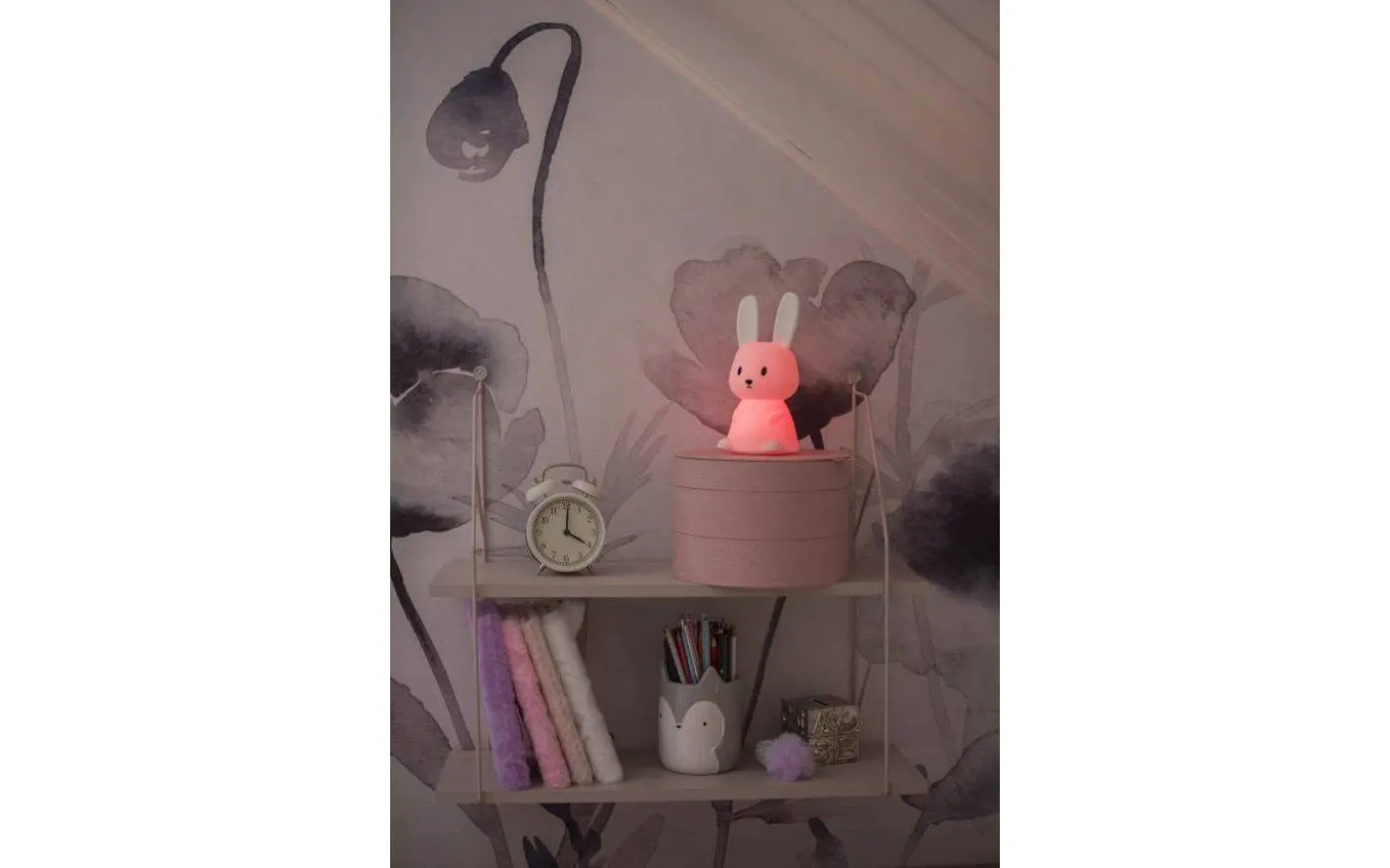 Bunny batteridriven nattlampa från Star Trading är en härlig nattlampa i form av en kanin. Med hjälp av en lätt klapp på kaninen kan du välja mellan olika härliga färger. Bunny nattlampa har inbyggd timerfunktion vilket innebär att lampa släcks efter 1-2 timmar om ingen rör sig.