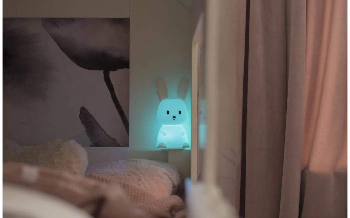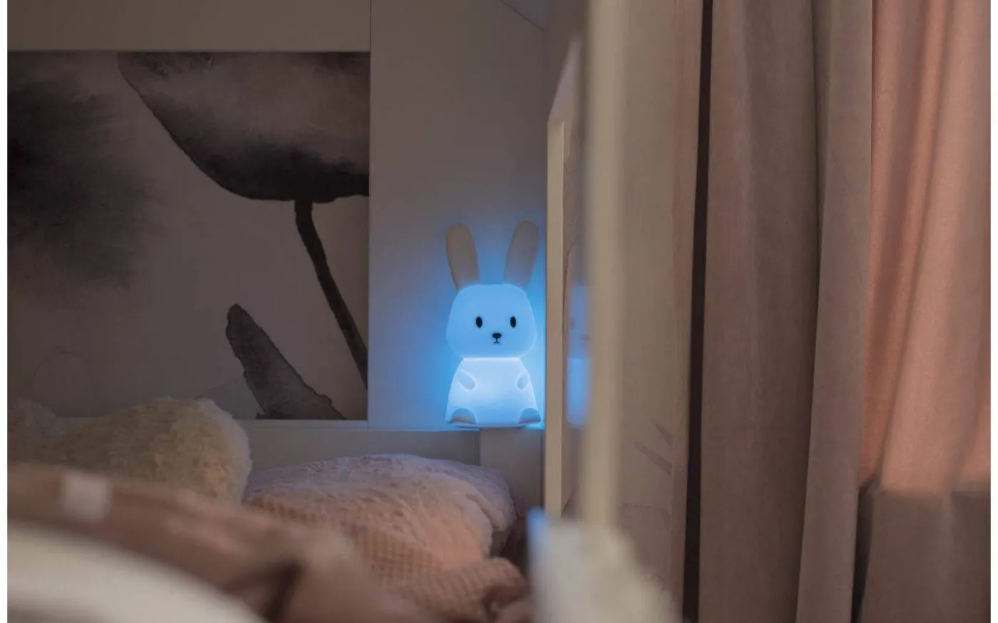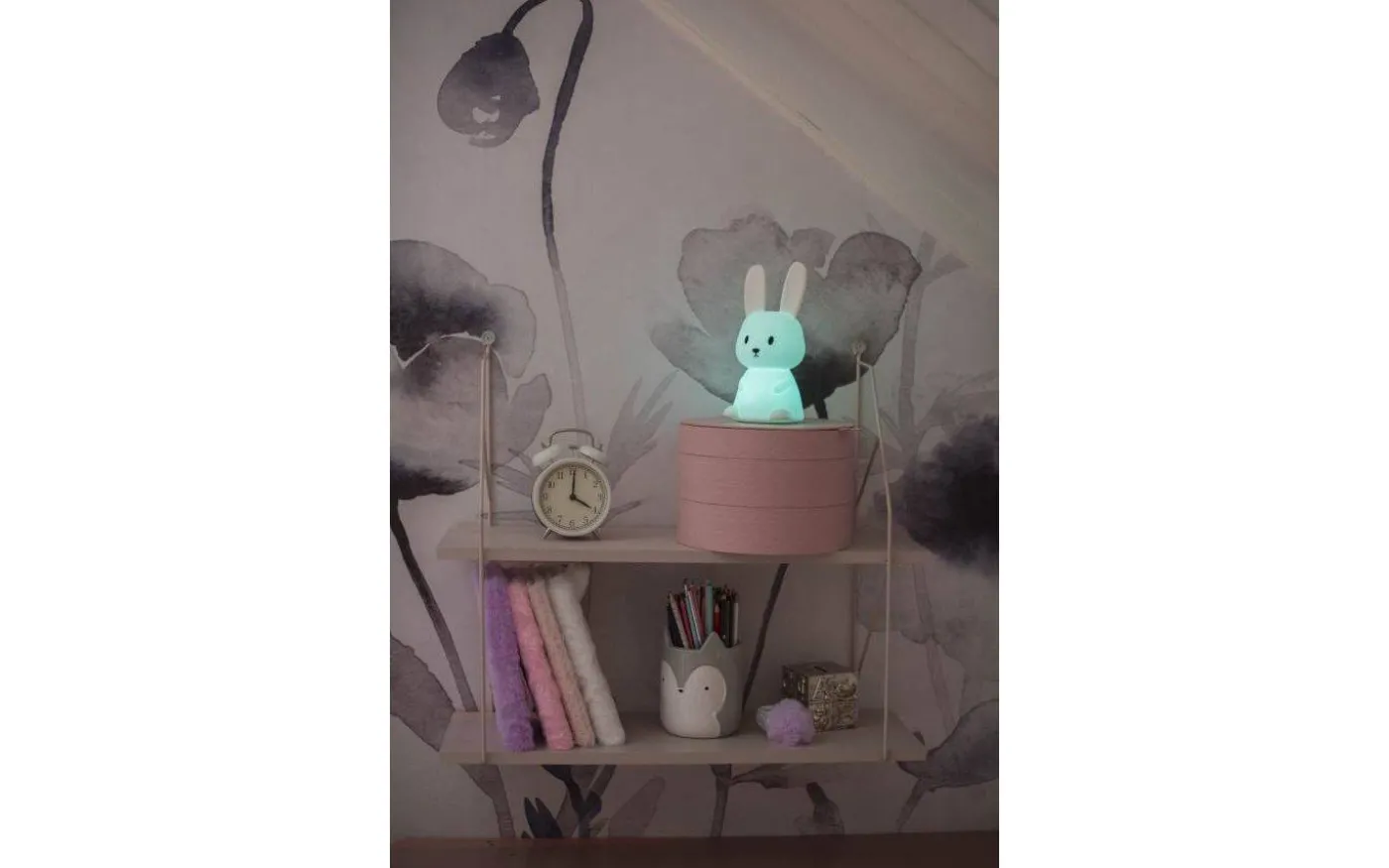 Bunny batteridriven nattlampa från Star Trading är en härlig nattlampa i form av en kanin. Med hjälp av en lätt klapp på kaninen kan du välja mellan olika härliga färger. Bunny nattlampa har inbyggd timerfunktion vilket innebär att lampa släcks efter 1-2 timmar om ingen rör sig.