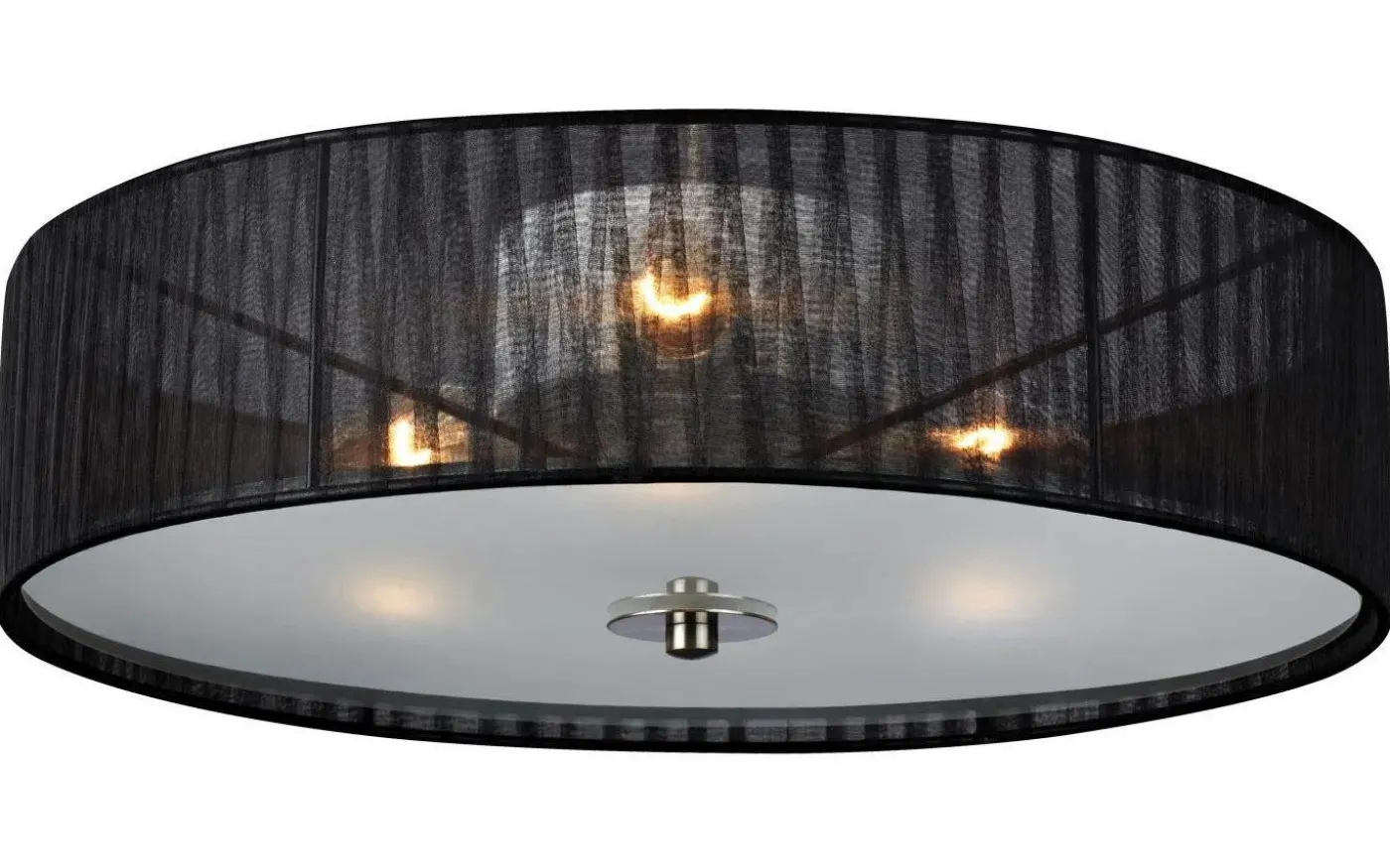Byske Plafond från Markslöjd har en skärm av orgazaband med ett frostat glas. Det frostade glaset ger ett mjukt och härligt bländfritt ljus i rummet.