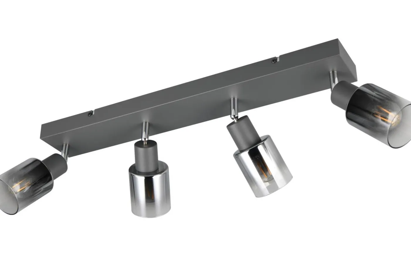 Med sin eleganta och moderna design drar CADIZ-lampan med fyra ljuskällor till sig allas uppmärksamhet och skapar ett imponerande blickfång i ditt vardagsrum. Spotlighten ger ett behagligt ljus i alla vardagsrum, sätter eleganta accenter och harmoniserar perfekt med trendiga inredningsstilar. Kombinationen av antracit och förkromat glas gör att armaturen erbjuder många möjligheter för individuell design. För modern och pålitlig belysning rekommenderas en LED-lampa. Den erbjuder hög ljuskvalitet, är mångsidig och övertygar med en jämn belysning. Dess långa livslängd och låga värmeutveckling gör den till det perfekta valet för en mängd olika användningsområden. Ljuskälla: exklusiv 4x E14 · max. 10W. Extra information: Takmontering, IP20, Lampa(or) ingår ej