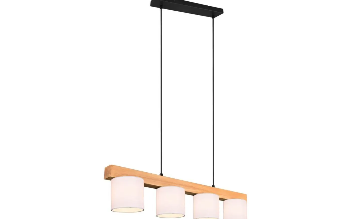 en spännande materialmix ger CAMERON vardagsrum massor av charm! De naturliga materialen, träet och tyget ger visuell värme och skapar en harmonisk helhetsbild. De vita tygskärmarna ger ett ljust och inbjudande utseende. För energibesparande belysning rekommenderas att använda en LED-lampa. Dessa är ett optimalt alternativ till konventionella halogenlampor och står för hög ljuskvalitet och energibesparingar på upp till 80 %. Dessutom hjälper LED-lampor dig att dra nytta av lång livslängd, låg värmeutveckling och samtidigt skydda miljön. Ljuskälla: exklusiv 4x E14 · max. 28W. Extra information: Justerbar i höjd, Takmontering, IP20, Lampa(or) ingår ej