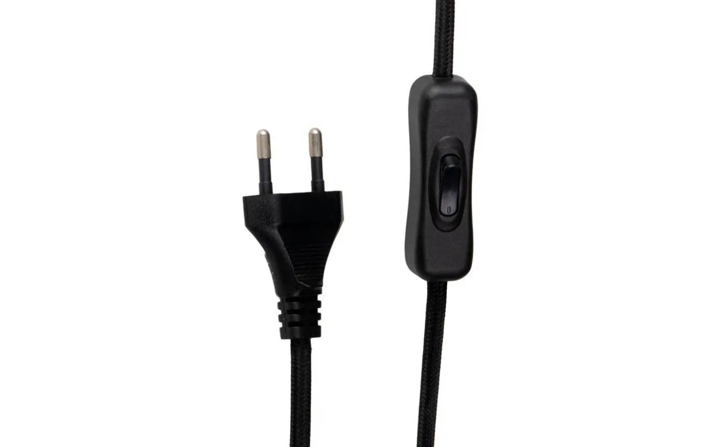 Levereras med en 2m lång textilkabel med strömbrytare och stickkontakt.
